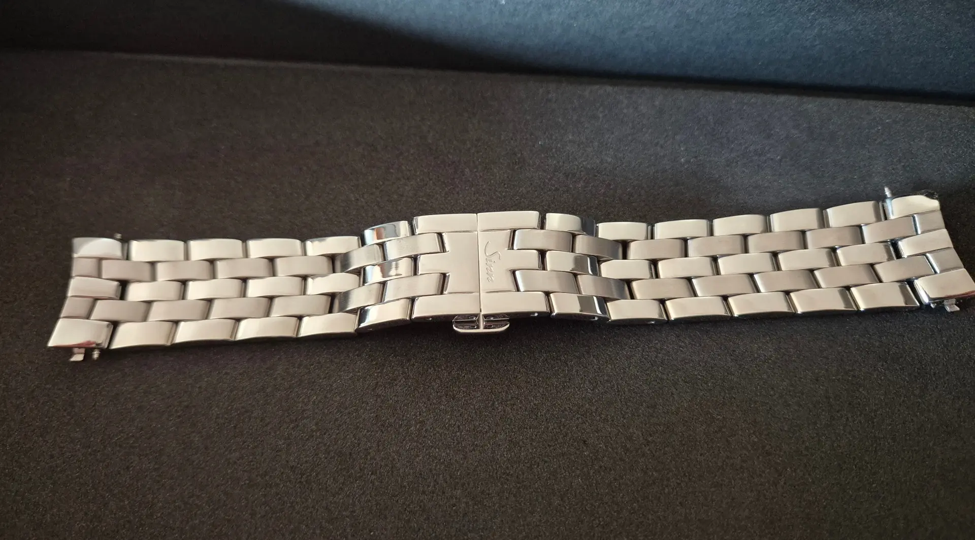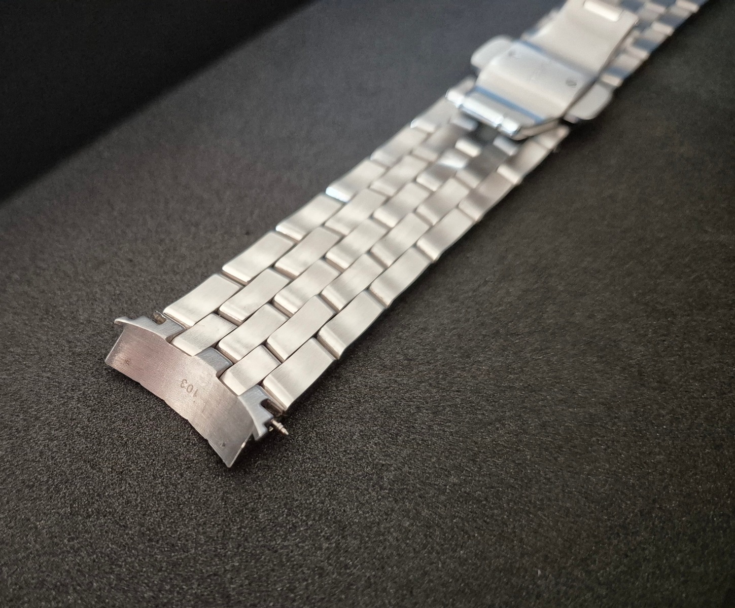 Zum Kauf möchte ich dieses feingliedrige Stahlarmband passend für die Modellreihe 103 anbieten. Es ist die ältere Variante mit den Schlitzschrauben als Verbindungselemente. Also insgesamt nicht so massiv wie die aktuelle Imbussvariante- die mir immer etwas zu "mächtig " ist.