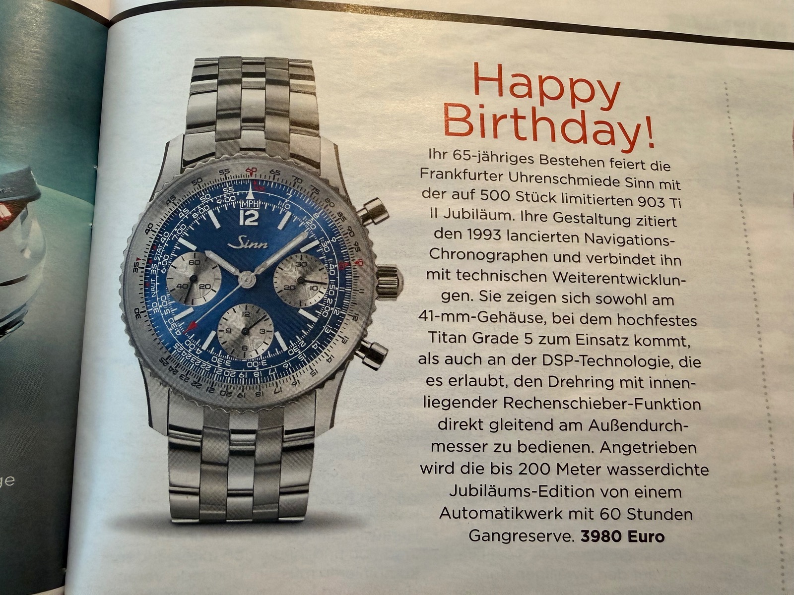 Auto,Motor & Sport 09/2026: Happy Birthday Sinn 903 Ti II Jubiläum