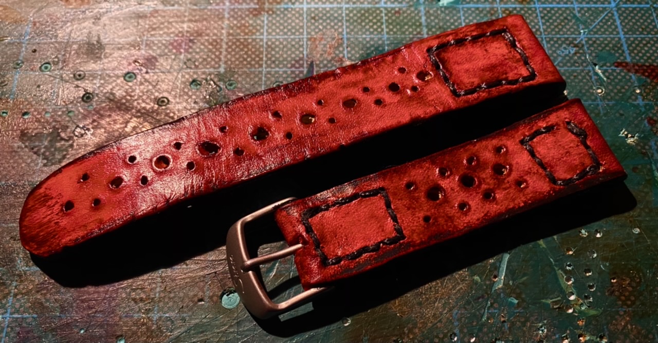 Dort habe ich dann das Kalbslederband mit Naht in blau und rot geordert - und was weißes, was ich an der 656L ausprobieren möchte: