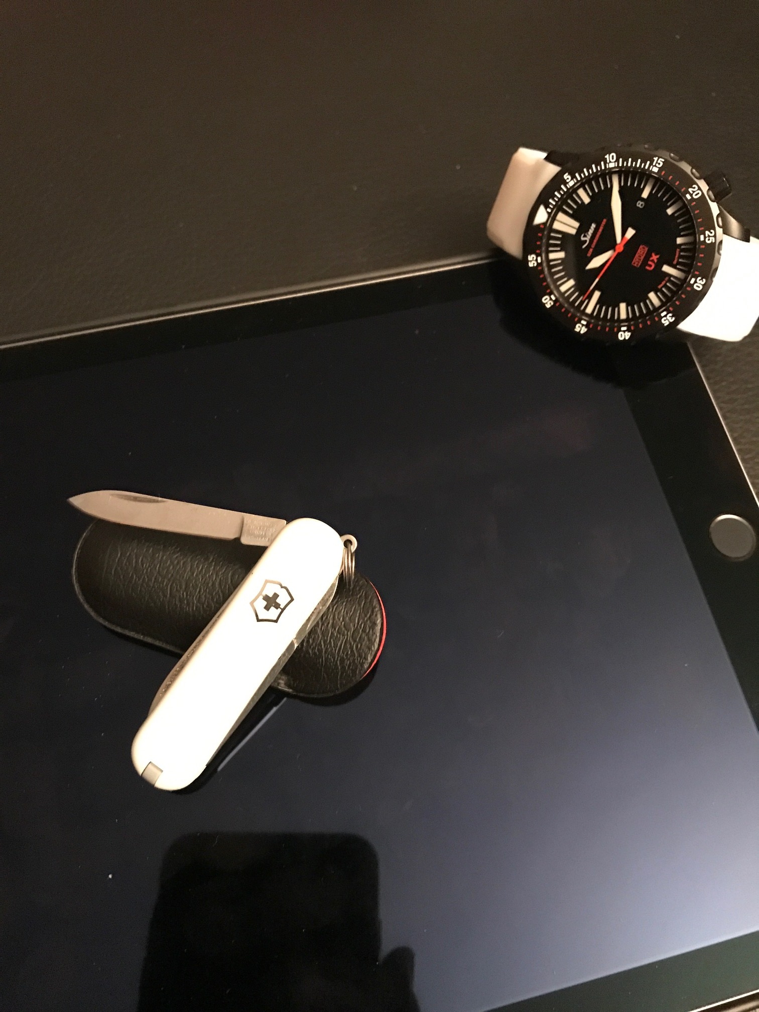 Im Auto habe ich einen kleinen Hobel, das Beste zum Späne machen.Natürlich nicht vergessen will ich mein vielgeliebtes Victorinox Outrider.