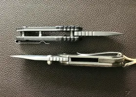 Sieht mir etwas zu "militärisch" aus, oder kommt das nur durch den Namen? Das kleinste Messer der 4, durch den schmale Griff so gerade eben noch gut zu öffnen mit dem Flipper. Mit dem Daumenpin schaffe ich es bei der Größe gar nicht. Dafür steht der Daumenpin minimal über das Gehäuse über und reibt somit am Hosenstoff. Dies ist auch das einzige Messer, bei dem ich etwas zu bemängeln hatte: Nach nur 3 oder 4 Tage des Tragen in der Hose (ohen schweißtreibende Aktivitäten) zeigte sich bereits etwas Flugrost auf der Klinge.