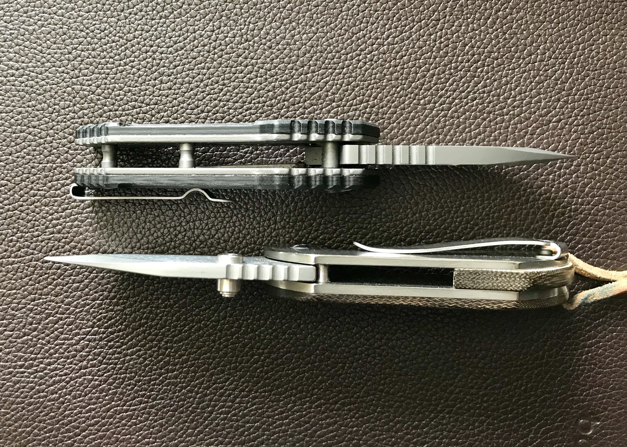 Gut: Alle haben die Deep-Carry-Clips, was ich im Büro sehr begrüße. Alles waren (bzw. sind immer noch) sehr scharf abgezogen und haben - gemessen an der jeweiligen Preisklasse, mit einer Ausnahme keinen Grund gegeben, etwas zu bemängeln. Alle Messer sind etwas größer als meine ursprüngliche Vorgabe, aber das wird durch die sehr schlanke Bauweise bzw, das sehr geringe Gewicht kompensiert. Alle sind durch die offene Bauweise sehr leicht zu reinigen.