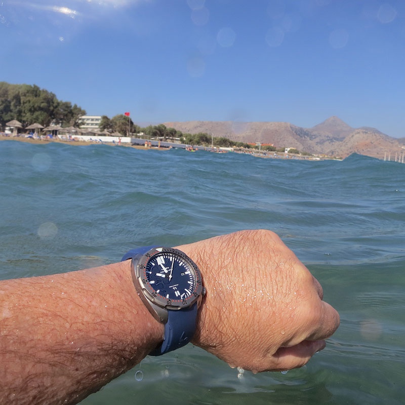 Für Ausflüge auf und ins Wasser hatte ich dann den Victorinox Diver dabei, durch das batteriebetriebene Werk gab‘s dann keine Probleme, wenn die Uhr mal längere Tragepausen hatte.Gruss