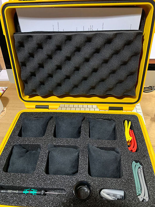Nachdem ich auf den Stammtischen immer meine Holzboxen dabei hatte, und dies nicht wirklich ideal war, und mein vierer Peli-Case zu klein ware, habe ich einen neuner Peli-Case mit Einsatz erworben. Jetzt fehlten aber die Kissen. Also habe ich Kontakt zu einer kleinen ortsansässigen Manufaktur aufgenommen und meine Wünsche geäußert. Am Ende stand der Komplettaustausch aller Kissen aller Boxen. Kisserella Productions hat wie nicht anders zu erwarten eine super Arbeit abgeliefert. Ich freue mich sehr. Aber seht selber.