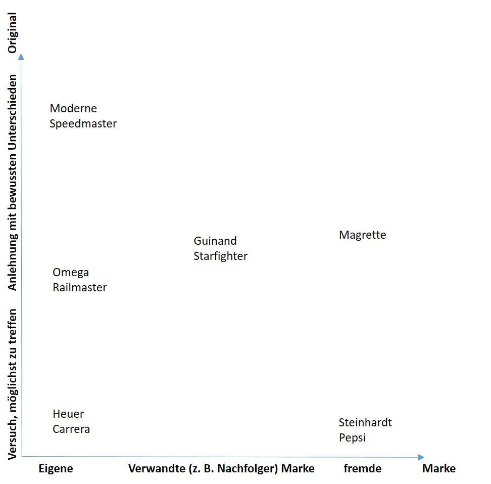 Eine Kopie, die das Design eines anderen Herstellers remminesziert, würde ich nicht tragen. So ist das vielleicht deutlicher.