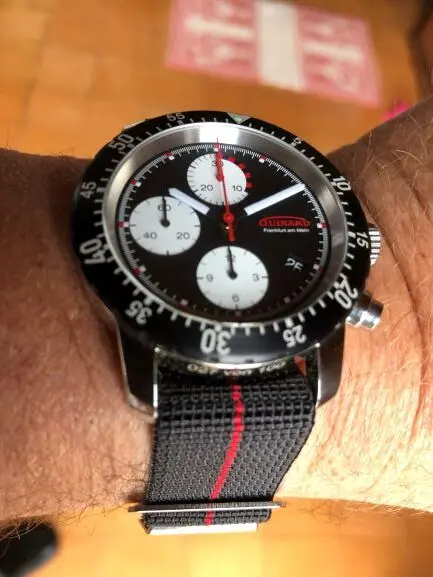 Das denke ich auch! Ein klein wenig vorne ist aus meiner Sicht hingegen das Original-Guinand-SFP-Band, dort wird - durch die Verjüngung zur Schließe hin - noch mehr die Anleihe an das Vorbild gepflegt. Beim Chronissimo verschwindet durch die Gehäuseintegration hiervon ein wenig. Alles aber sehr subjektiv. Und fraglich, wie sich das im Sommer alles macht.