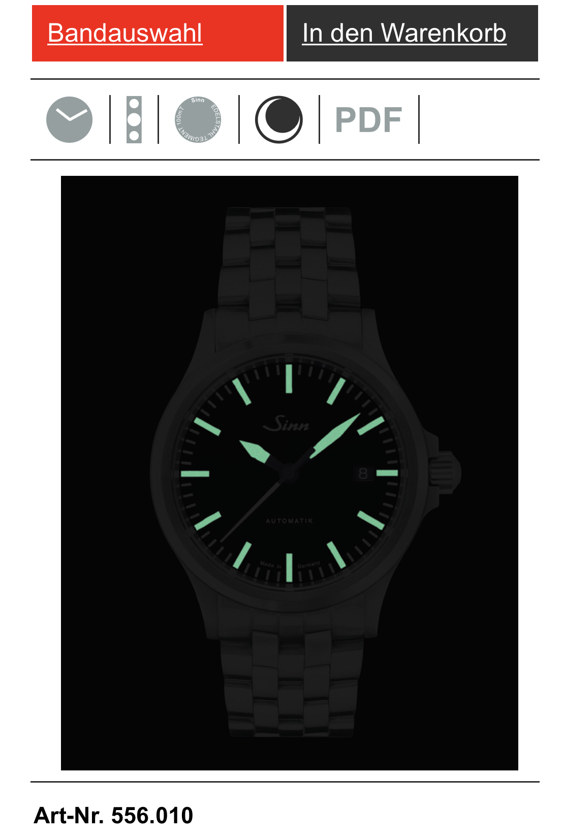 Kennt hier zufällig jemand den Zeitraum, in der Sinn die 556 mit Lume auf der gesamten Minuterie ausgestattet hat? Die allererste 556 von mir hatte dieses Blatt, der Screenshot der Sinnseite zeigt, wie es heute aussieht.