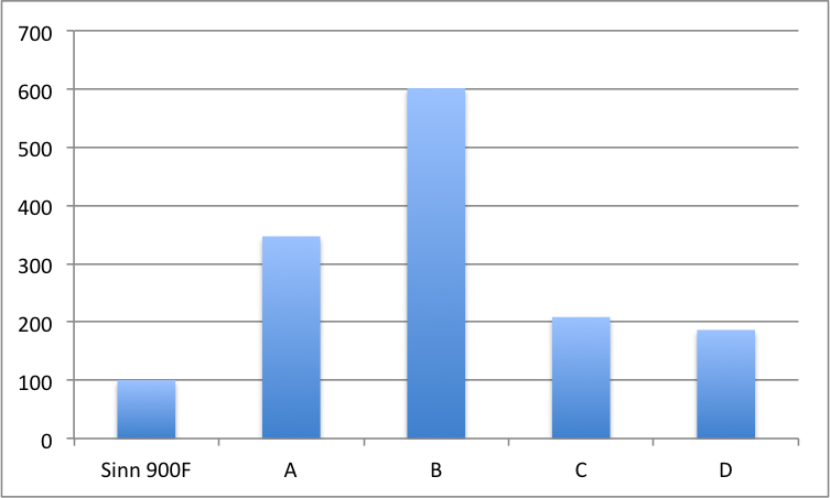 Preis-Gewichts-Benchmark normiert und anonymisiert: FrechAuslachen