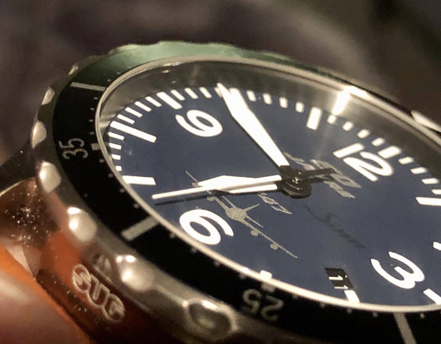 • Es gab ja Spekulationen, ob die Zeiger länger sind, oder ob die Geometrie des Ziffernblattes verändert wurde, um den überlappenden Minutenzeiger zu erzeugen. Die Zeigerlänge kann ich mangels anderer 857 nicht vergleichen. Aber der Chapter-Ring scheint eine minimale Neigung zu haben, womit der Durchmesser des Ziffernblattes minimal kleiner würde. Aber die Fotos sind hier nicht eindeutig, ich meine nur, bei meiner 756 wirkt er steiler ...