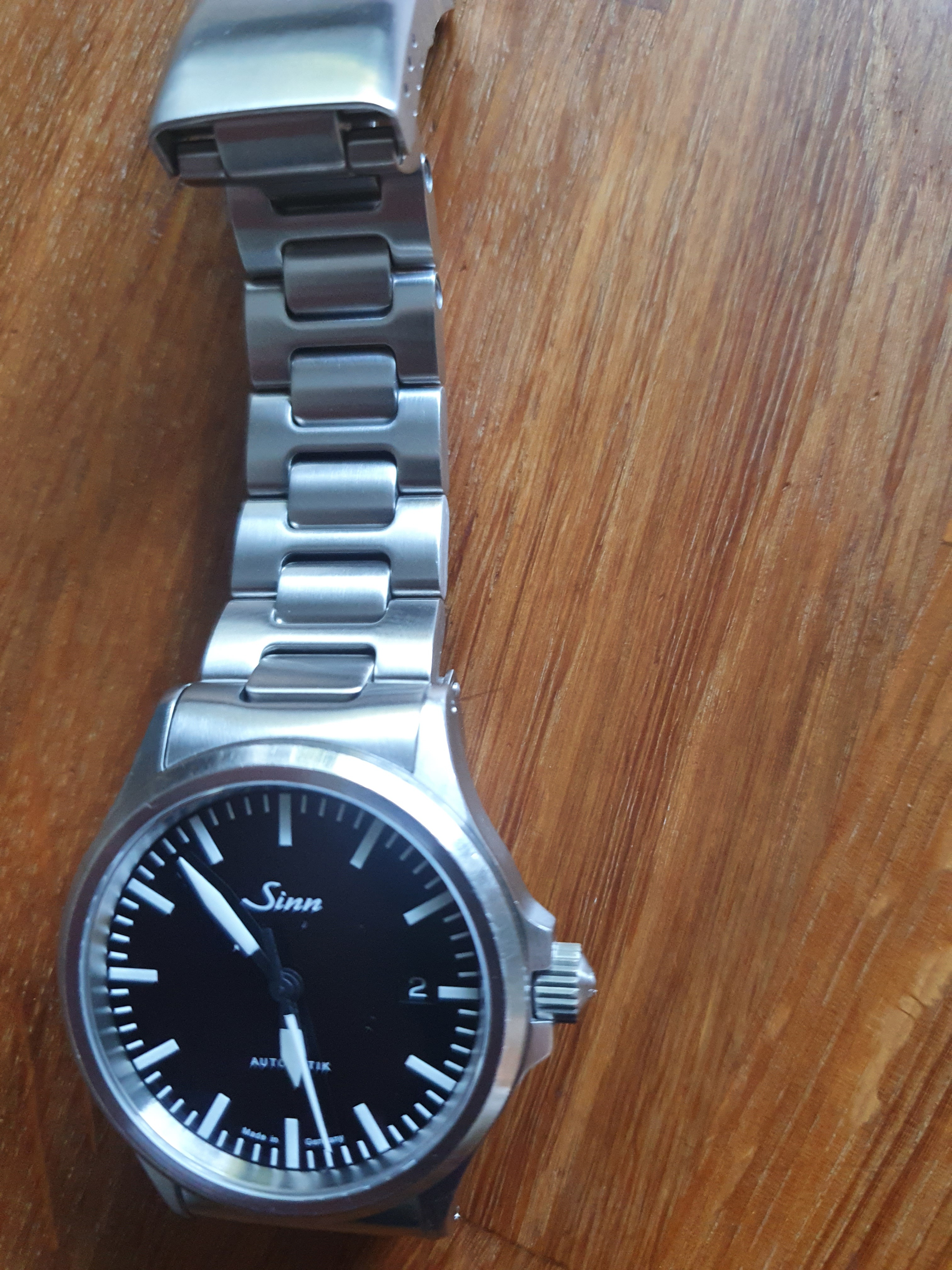 Meine 1. Sinn war ein 144 Chrono St Sa für mein 17,5 cm HGU. Noch in Rödelheim erworben. Ich glaubte zu merken, dass Chronos nicht so mein Ding sind: Anwendungen im Alltag boten sich nicht an und das ZB voll, obwohl ich den Chrono kaum nutze. Dann parallel eine Fortis Cosmonaut 3 Zeiger Uhr. 2 Marcello C s, 1 Chrograph, 1 Hommage, mußten ziemlich schnell wieder gehen, da deren Aura für mich nicht vorhanden war.