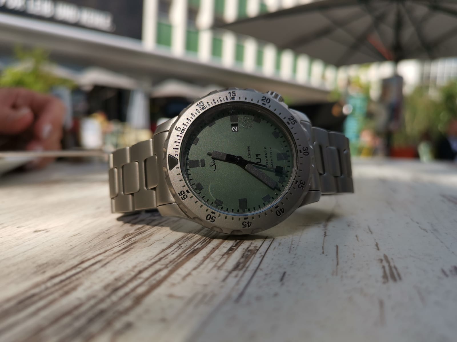 Eine Grüne von Roberto... Und da war es geschehen um mich. Kurzer Besuch am Römer mit Versicherung das es sich bei diesem Modell wirklich um eine Sinn handelt und nicht ein billiges Plagiat, Telefonat mit Essen und Samstags von Frankfurt aus ne Spritztour gemacht die ich mit einer neuen grünen U1 aus der Sonderserie von Roberto beendete. Sie bekam gleich noch das Stahlband dazu und ist bis heute so geblieben. Auch wenn es eine limitierte Edition ist, bekommt Sie fast 50% Wristtime.