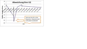 Ich trug die Uhr, seit dem Tag der Abholung jeden Tag, auch nachts. Die Werte waren sehr gut und lagen bei ca. +3,5s/Tag (Siehe Tabelle 1). Auch die tegimentierte Oberfläche macht ihrem Namen alle Ehre. Kein Kratzer bis heute. Auch das Spezialöl für die Temperaturresistenztechnologie und die Trockenkapsel halten ihr Versprechen. Die Kapsel ist bis heute schneeweiß geblieben. Die Krone ist einer der Besten, die ich kenne. Griffig und leicht zu bedienen. Am 01.03.2019 merkte ich nach dem Stellen der Uhr, dass sie stark ins Minus wanderte. Von +3,5s/Tag änderten sich die Werte innerhalb einer Woche auf -25 bis -30s/Tag. Ich wartete noch bis zum 31.05.2019. Dann ging ich erst zum Juwelier, da ich dachte ich hätte einen Fehler beim Stellen der Uhr gemacht. Minutenzeiger beim Drücken der Krone wieder um ein bis zwei Minuten zurückgestellt. Der Juwelier erklärte mir aber dann aber nach einem kurzen Check mit der Zeitwaage, dass die Uhr tatsächlich zu schlecht läuft. Sie wurde dann gleich zu Sinn eingeschickt und obwohl ich die Garantiekarte vergessen habe, ging die Uhr zu Sinn (Ich konnte die Garantiekarte abfotografieren und meinem Juwelier einfach schicken). Da sage ich nur danke dafür. So muss es laufen.