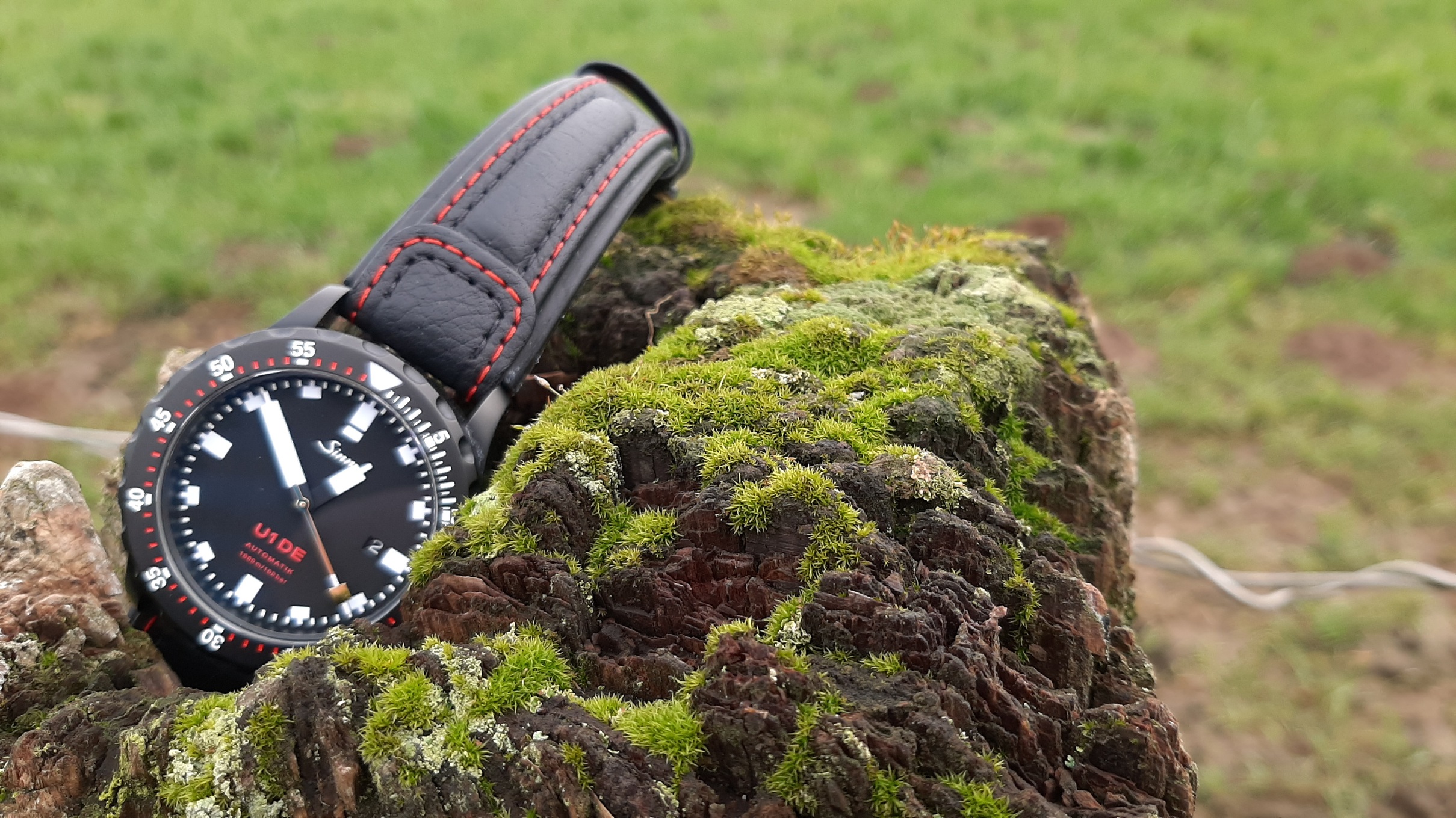 • Da gebe ich die zu 100% Recht, bei der DS ist das die stimmigste Kombination. Andere Bänder würden zu sehr von dem einzigartigen Ziffeblatt ablenken und die Uhr weniger elegant/dressig (sofern man das bei einer U1 sagen kann) wirken lassen.