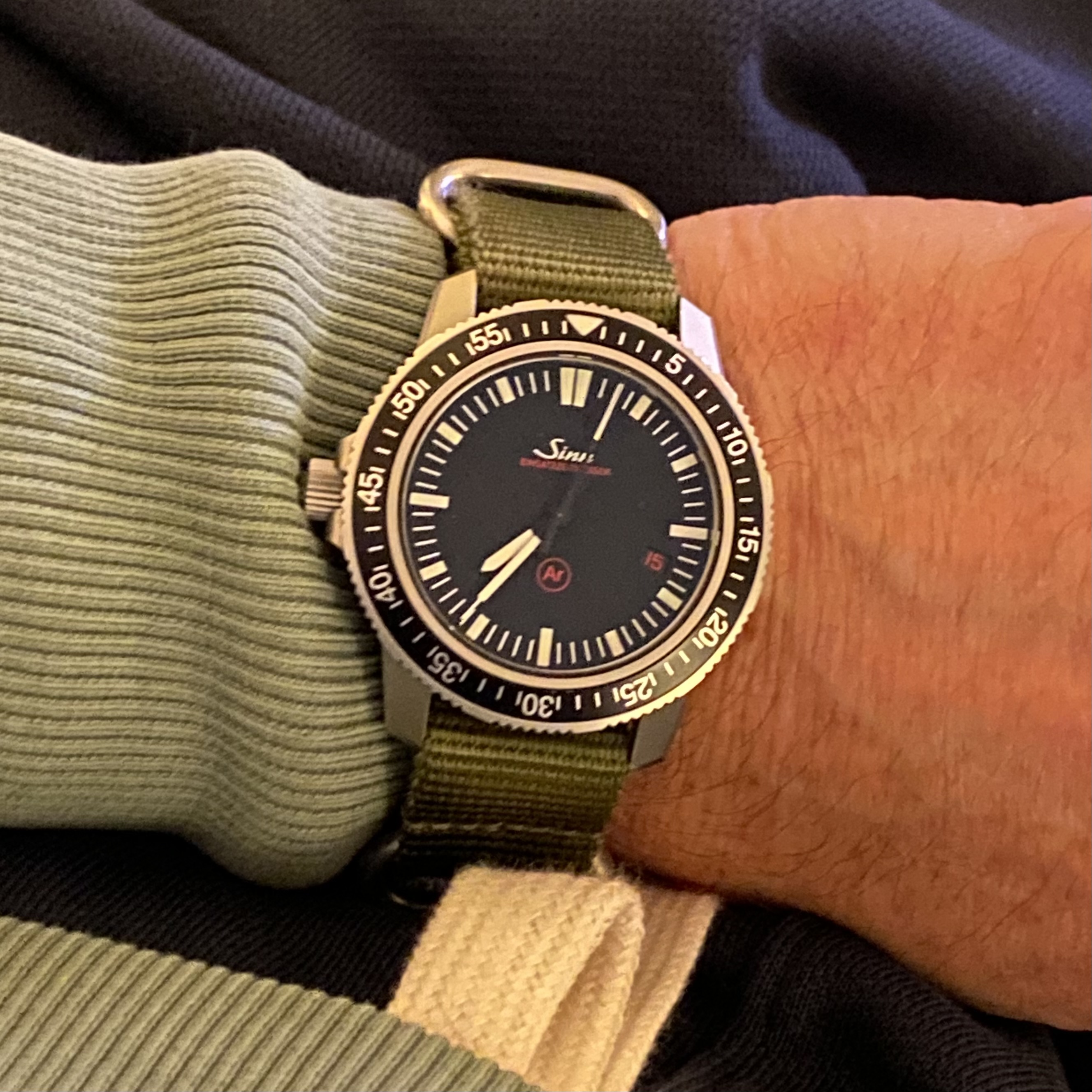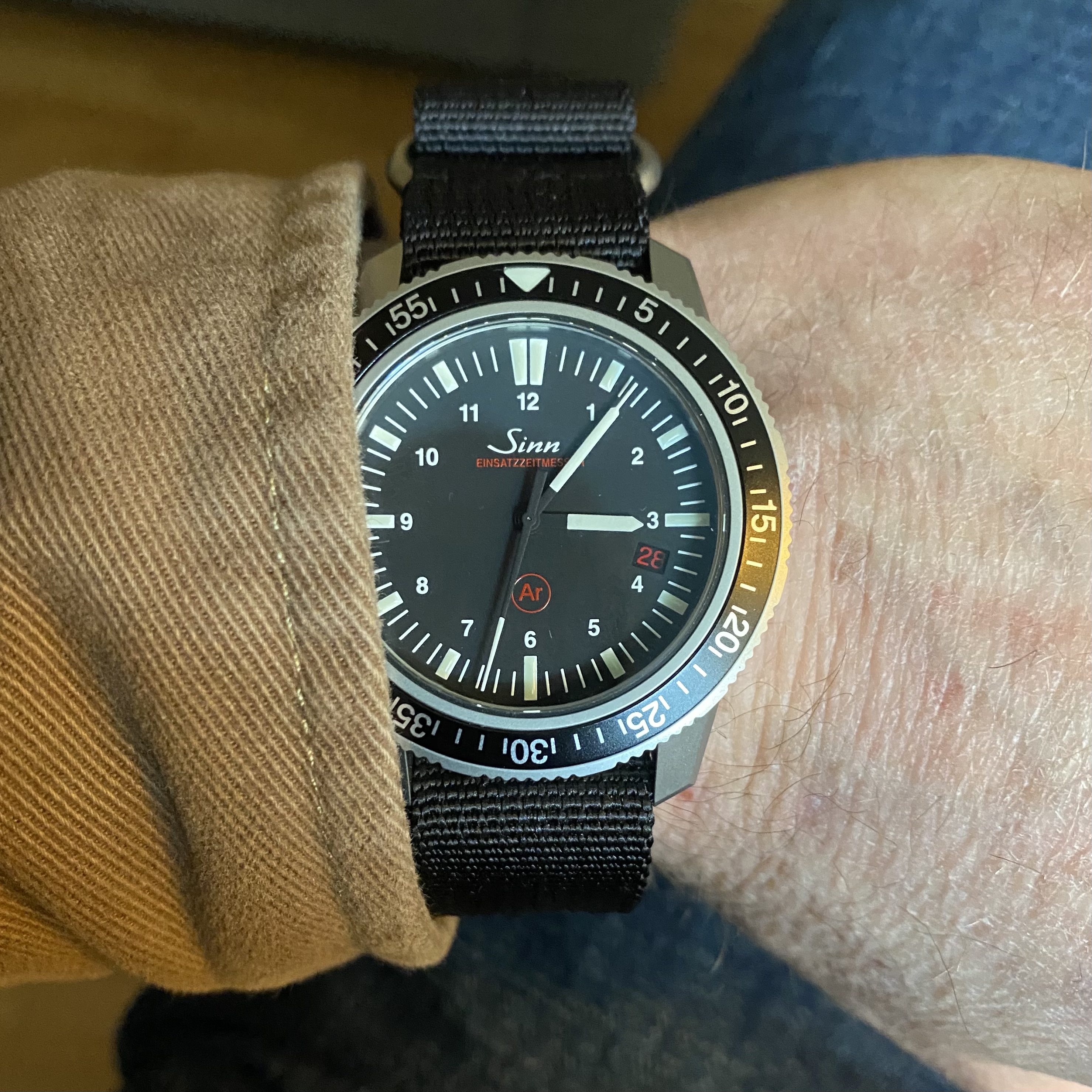 Gestern habe ich mir dann beim lokalen Händler einen Einsatzzeitmesser gekauft. Nun geht die Suche nach dem richtigen Band los. Erst mal am Natoband