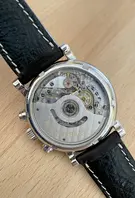 Das Gehäuse hat ein Durchmesser von 37mm. Das Zifferblatt ist Silber, die Zeiger sind gebläut.Im Gehäuse tut ein Valjoux 7750 seinen Dienst. Das Werk wurde von Rainer Brand noch mit Wellenschliff und Perlage verziert. Der Rotor ist mit dem Rainer Brand Logo verziert. Ich hoffe das kommt mit den Bildern herrüber.