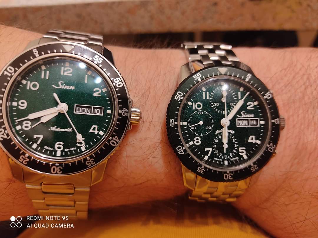 Als wir im Dezember 2020 nach Frankfurt gefahren sind , gab es eigentlich nur einen Grund. Dieser war ein Stahlband für eine Sinn 104 zu kaufen, hat auch fast gut geklappt, bis wir dann in den Showroom gelaufen sind. Dort war sie ausgestellt, diese grüne Schönheit. Haben sie dann ans Handgelenk gepackt und kurz getragen. Das wunderschöne Ziffernblatt hat uns dann tatsächlich so begeistert, das wir uns kurzum entschieden haben, sie zu kaufen.