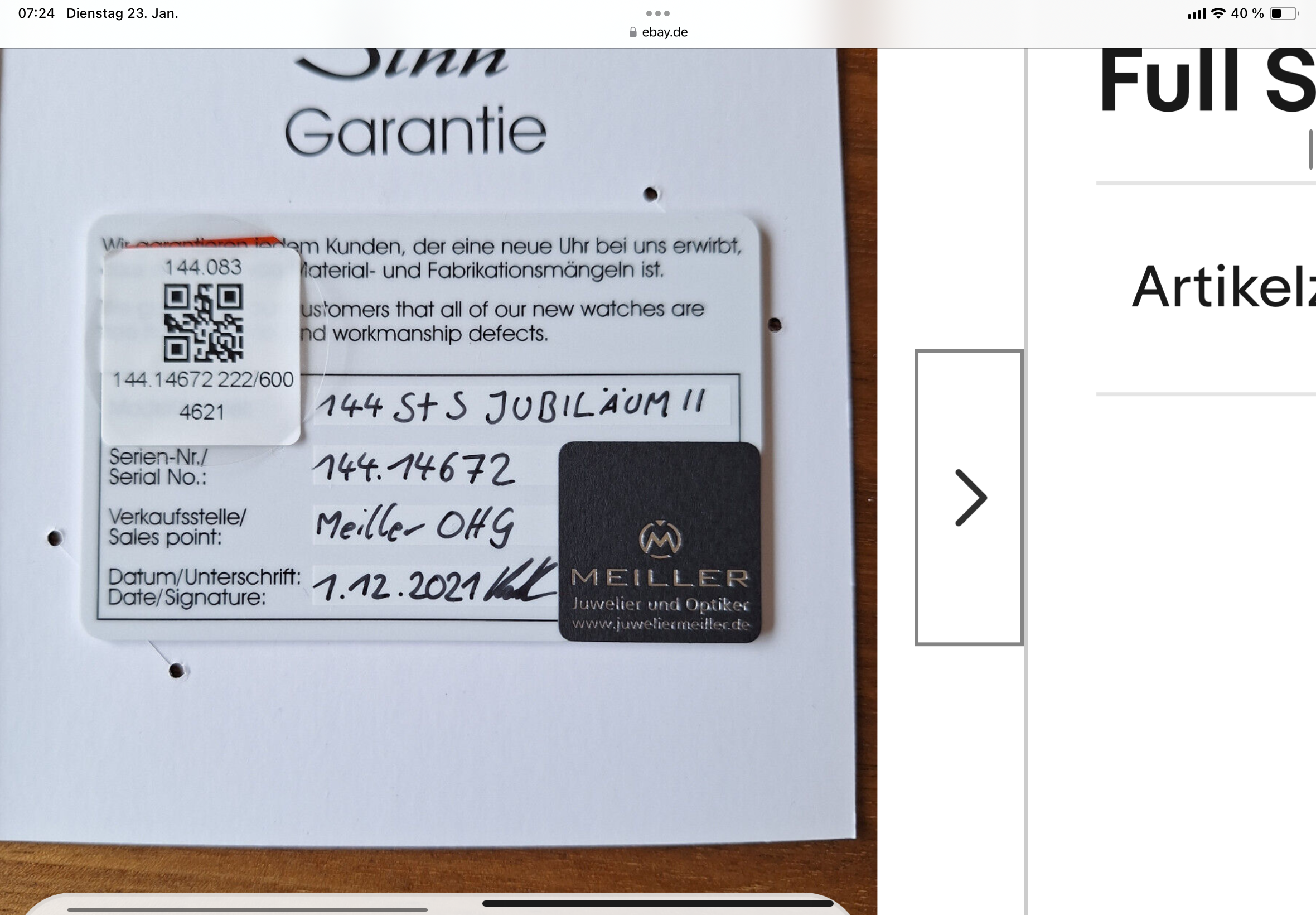 Den zweiten fragte ich auf umgekehrter Basis. Er hatte ein Foto mit Seriennummer auf dem Bodendeckel (die Lim.No war unkenntlich gemacht)