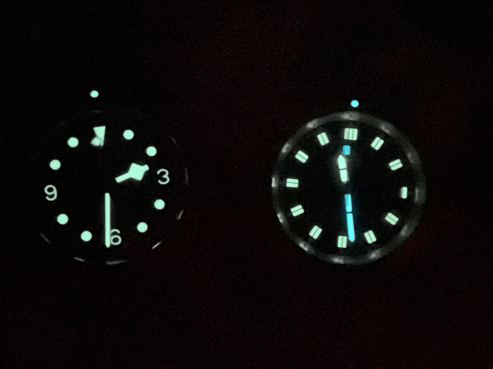 Die Lumeshots sind einmal im Vergleich zu meiner Tudor Black Bay Bronze Heritage (als 3s Belichtung, daher etwas unscharf) und einmal allein als "normale" Aufnahme.
