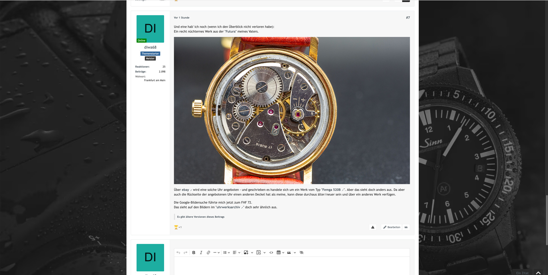 Das mit der Ladedauer im “welche Uhr habt ihr heute an” ist, wie Dirk ja auch schon beschrieben hat, nervig. Liegt wahrscheinlich an der beachtlichen Größe des Fadens. Vielleicht gibt es eine Möglichkeit nur die letzten zwei bis vier Wochen im Faden aktuell zu halten und den Rest in ein Archiv zu verschieben. Nur so als Idee, hab aber keine Ahnung ob sowas möglich ist.