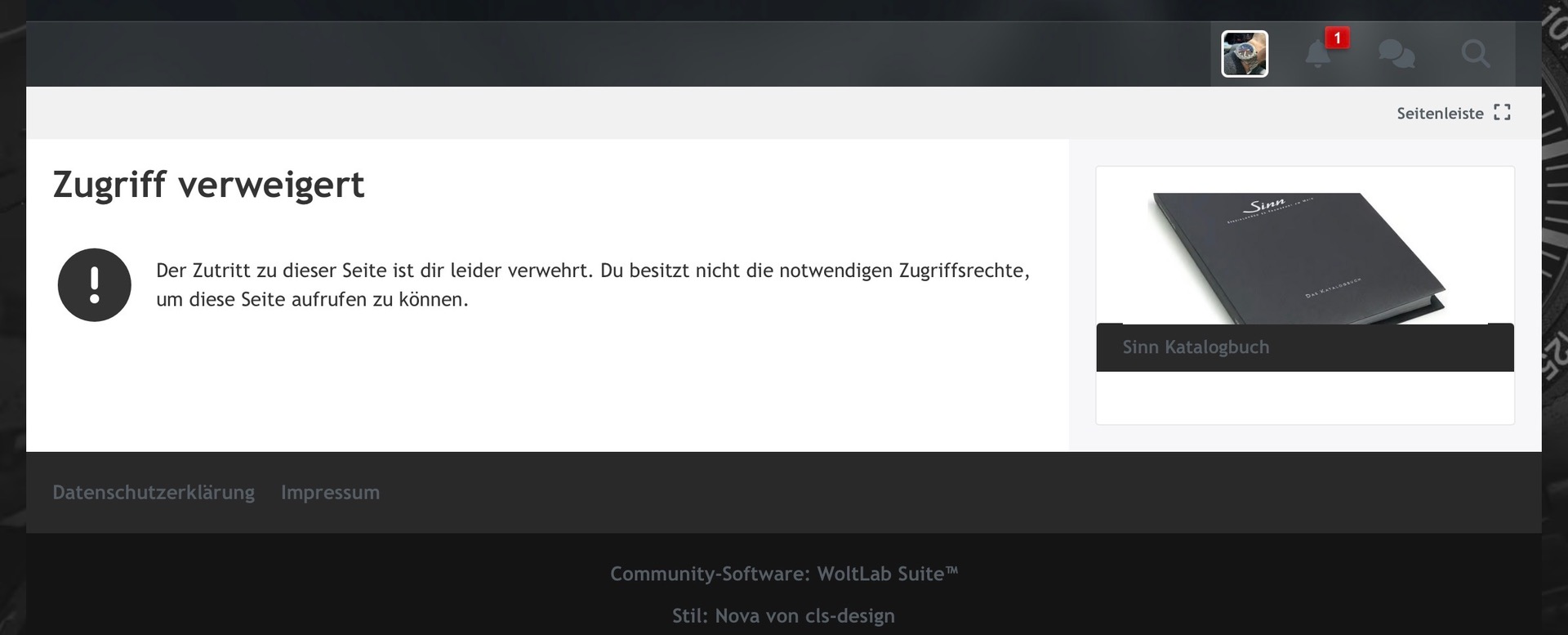 Wenn ich aufs Katalogbuch klicke, öffnet sich die entsprechende Seite auf Sinn.de…