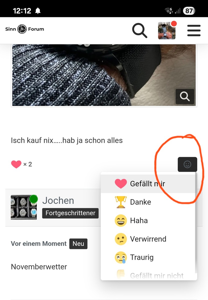 Könnte man den Smiley nicht andersfarbig hervorheben, wenn man bereits eine Reaktion zum Beitrag abgegeben hat?