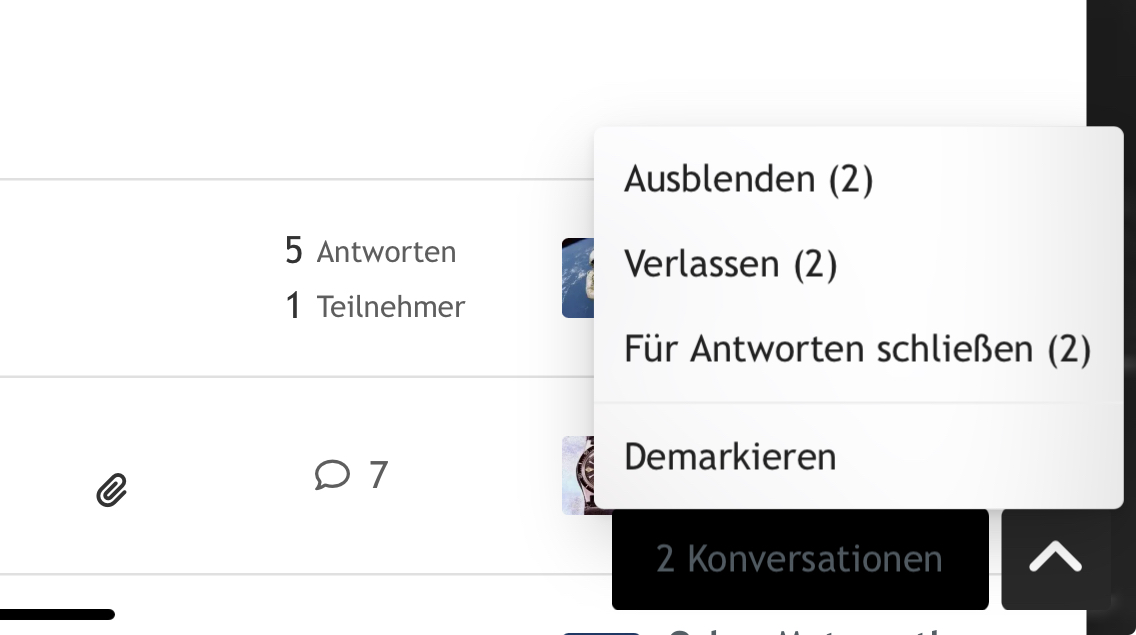 Sofern ein Teilnehmer einen Betrag "geliked" hat oder anderweitig reagiert hat, wird das vorher graue Symbol dann schwarz. So kann man erkennen, ob man schon reagiert hat.
