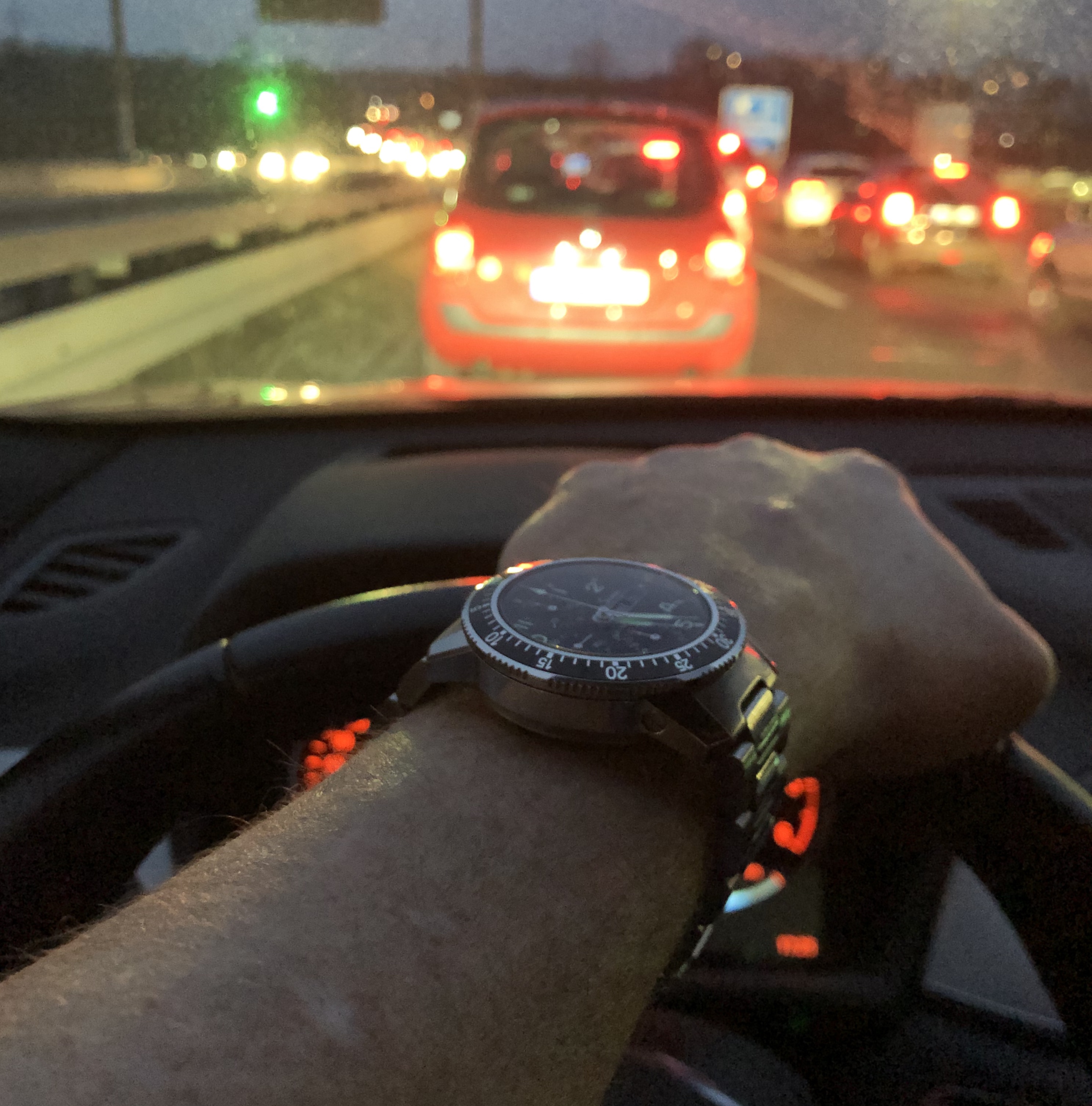 Mit der Sinn 103 St Sa im Stau. Schade um den Feierabend.