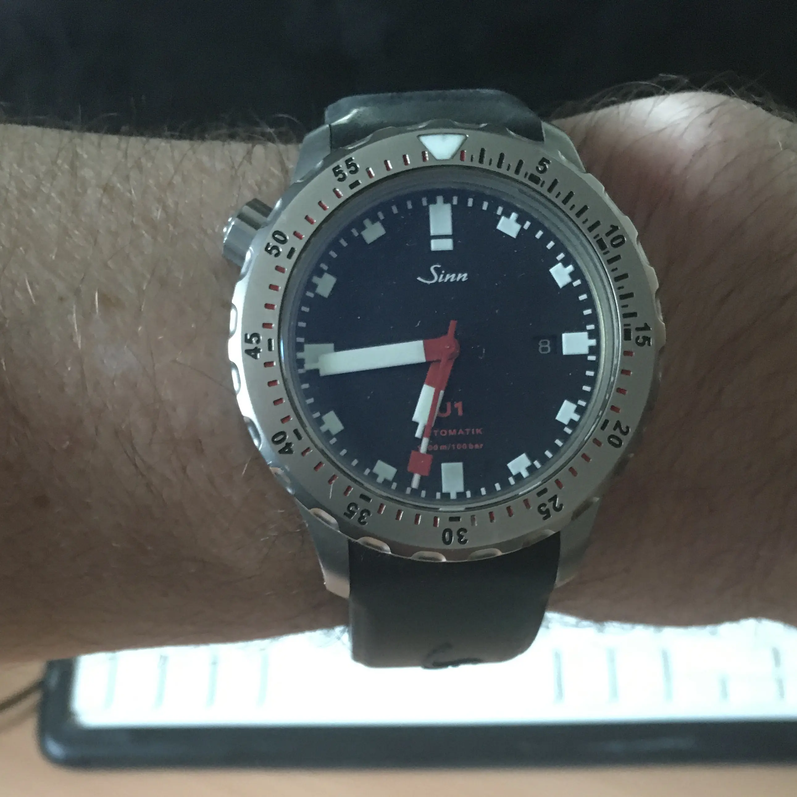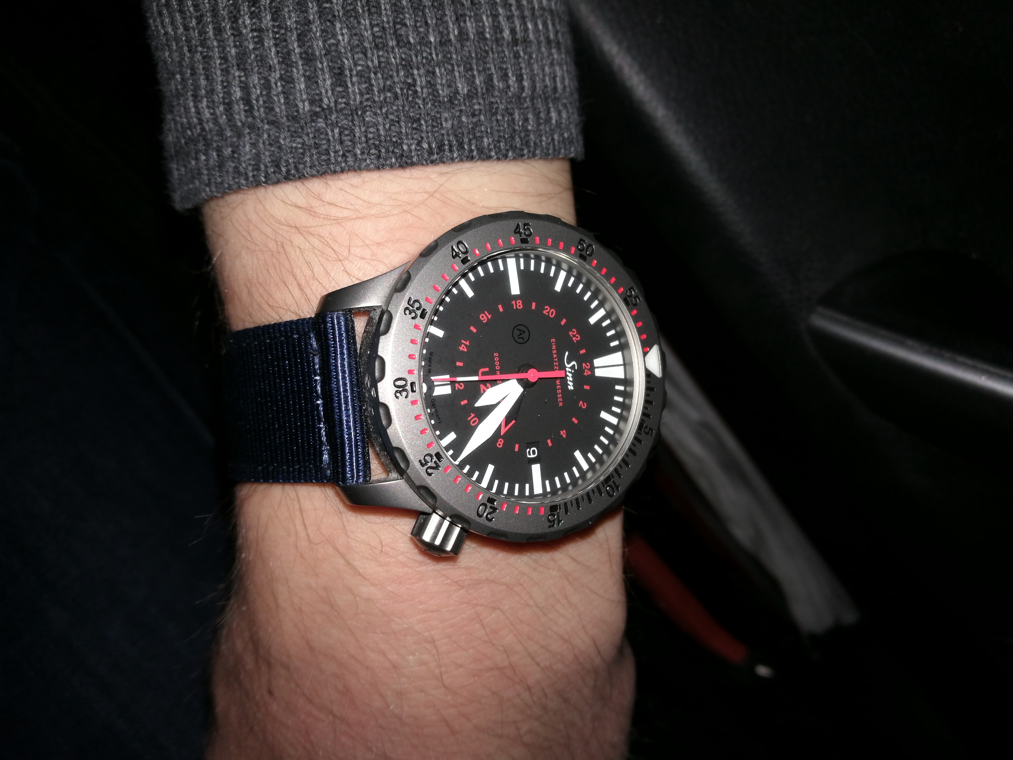 @ Onkel: die Zeiger sind orange-rot. Original Sinn. Je nach Licht sehen sie mal heller, mal dunkler aus. Aber es sieht so aus, als wären Blatt und Zeiger mal erneuert worden .