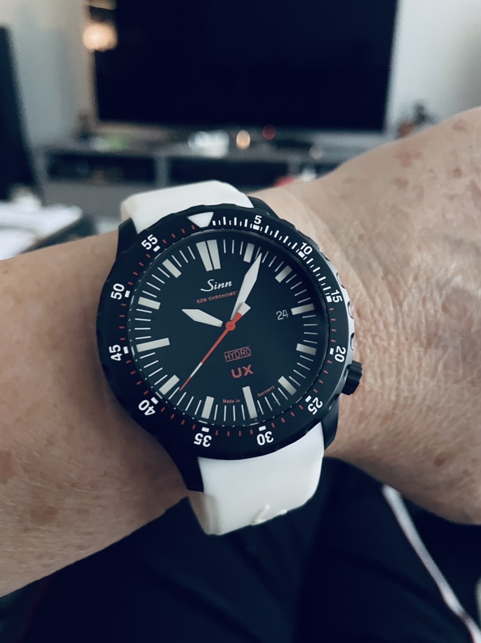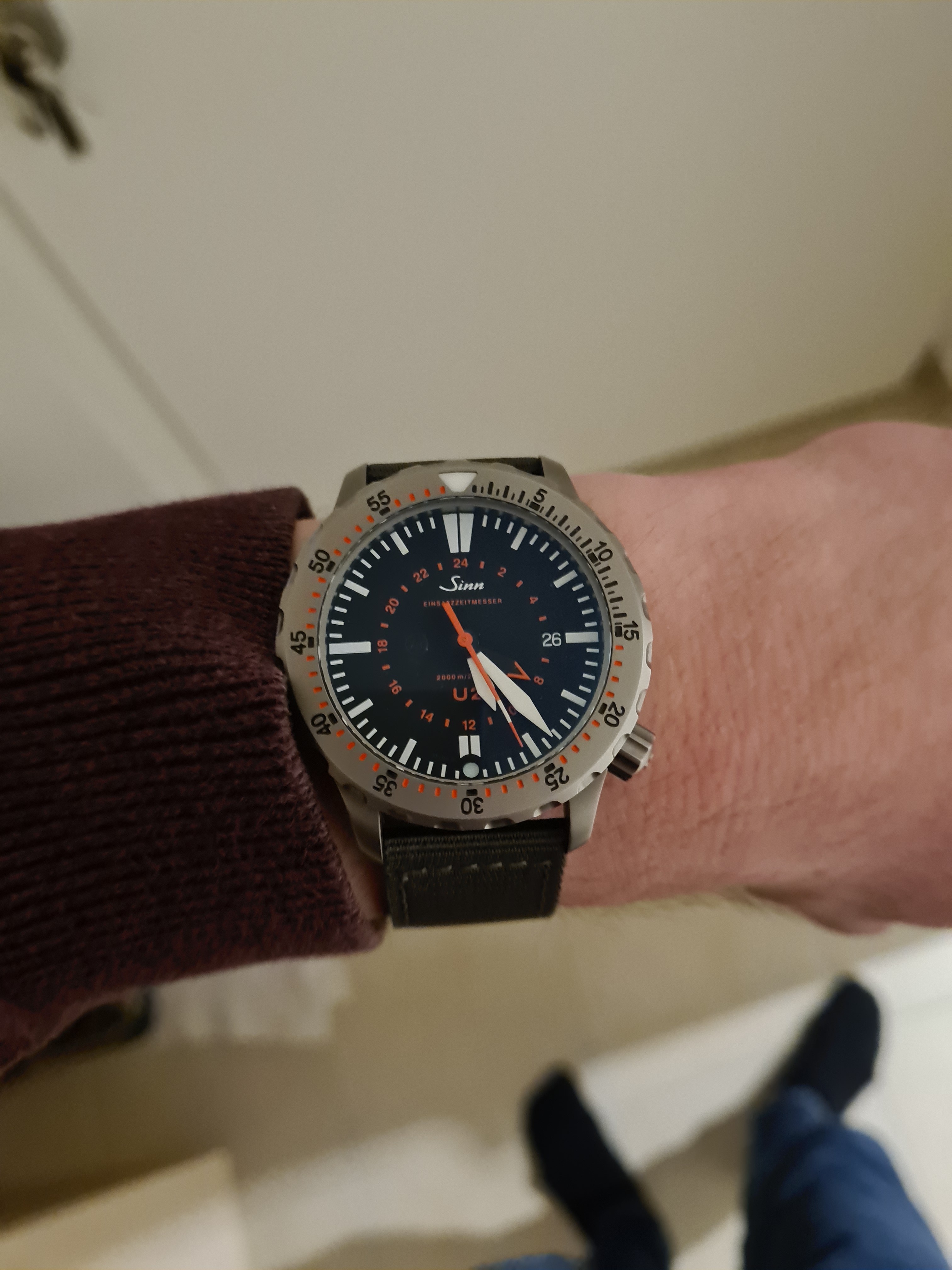 War ja nur Leihgabe meines Mannes. Ich mag große Uhren aber 47 mm ist dann doch to much.Hier kommt meine 1. Sinn von 06/2012 mit 1. Batterie