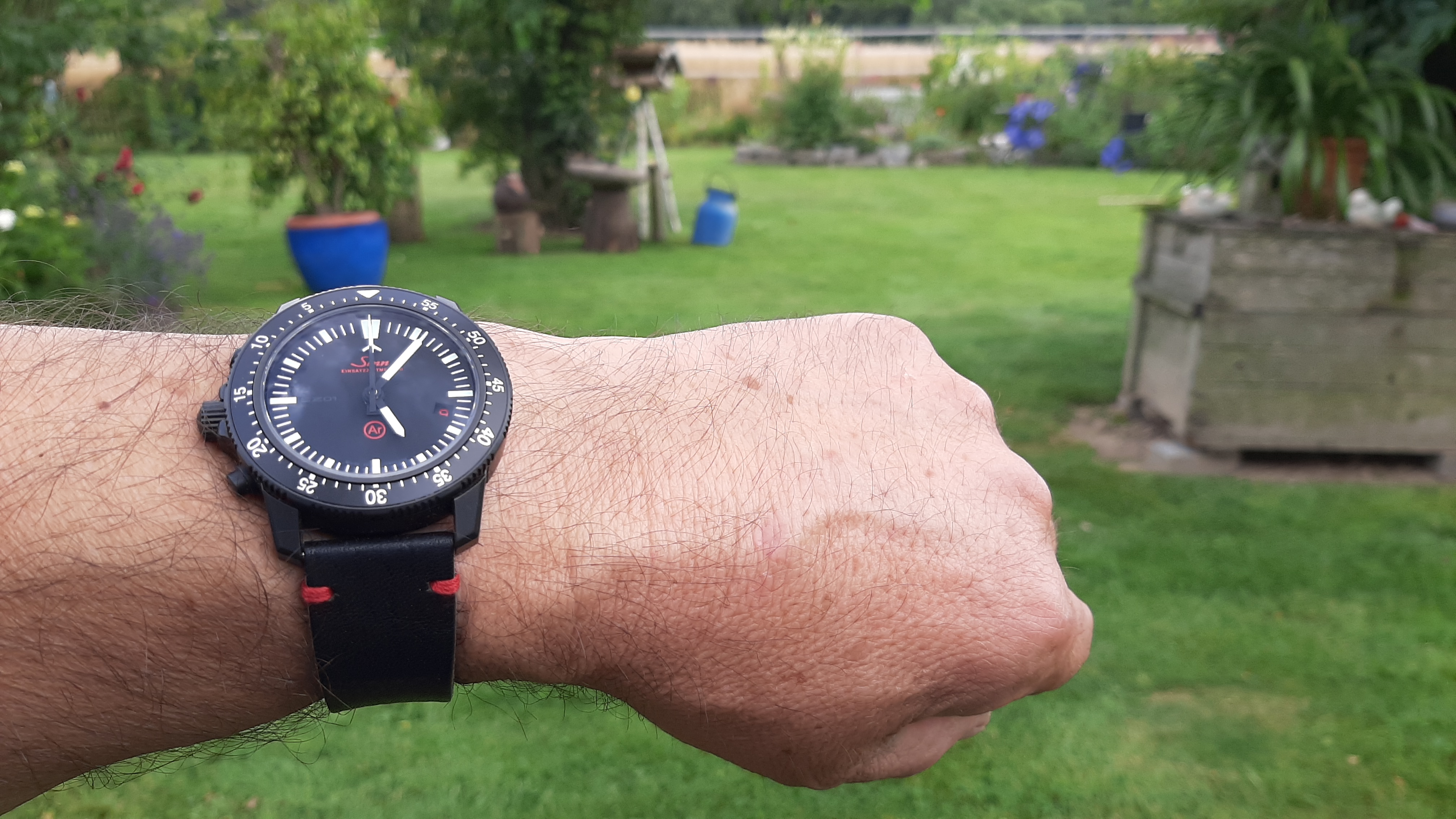 Am Wochenende wird dann auf Stahlband umgerüstet. Das schwarzrote Lederband passt mMn sehr gut zum minimalistischen Design des EZM, ist allerdings nicht wasserfest.Freudige Grüße
