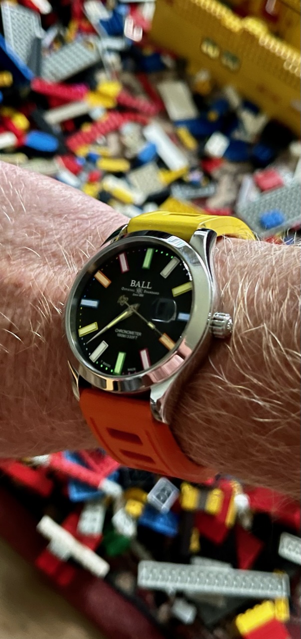 Ein farblicher Kontrast von der Uhr zum Band hebt für mich die Uhr selbst als Herzstück nochmal heraus. Deshalb werde ich ihn, wenn ich es denn schaffe meine Finanzen zu sortieren und die Ausgabe durch das Genemigungsverfahren zu manövrieren, den Schwarzen an Leder tragen.