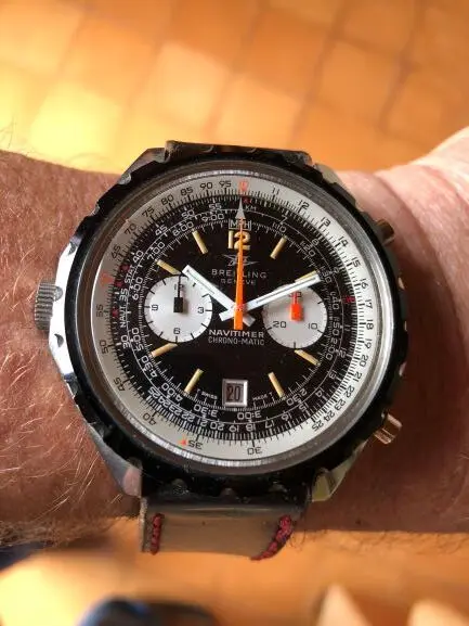Heute wird die 144 Ti vom Rindslederarmband in Vintage-Optik, dunkelbraun und mit weißer Kontrastnaht, getragen!