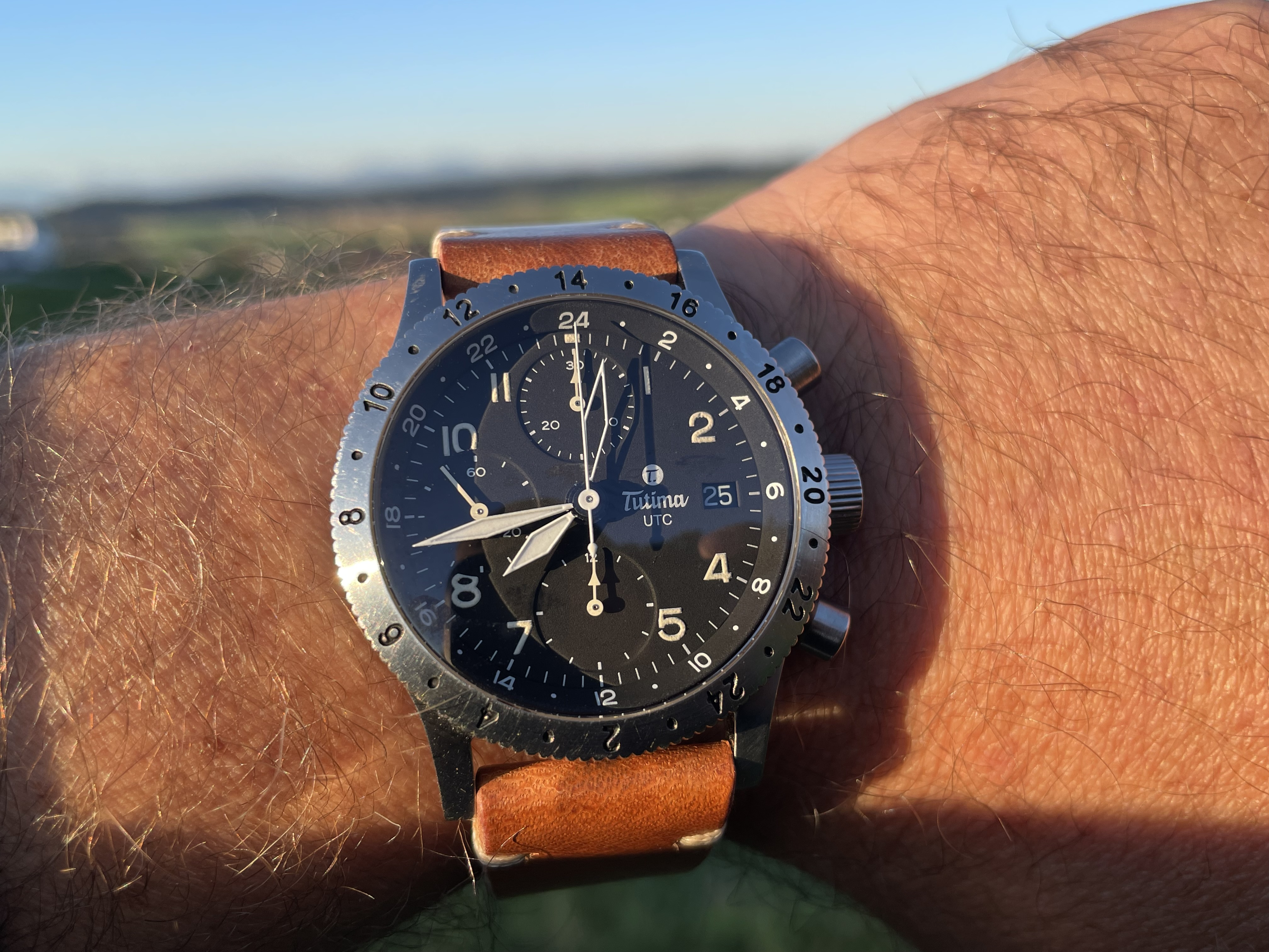 Tutima FX mit 2. & 3. Zeitzone aus der Mitte. Zurückhaltende 38mm im Durchmesser
