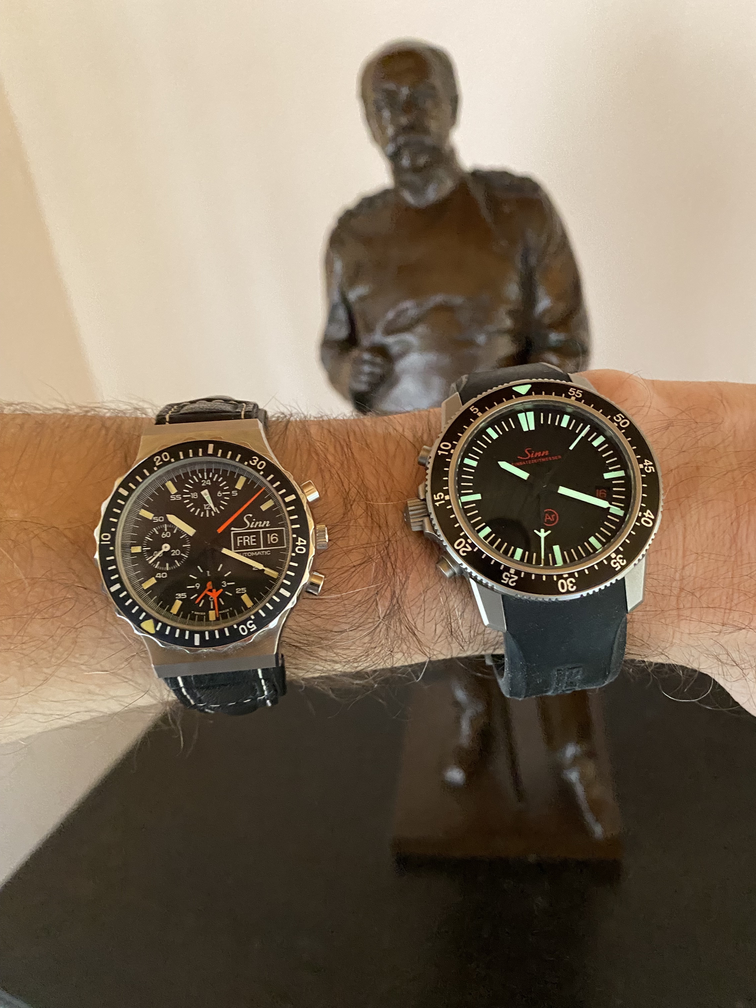 da muß ich Dir leider WIDERSPRECHEN! Schau einfach noch mal genauer hin! Die 1.1 hat beim Datum die VOLLE LÄNGE der Sekundenstriche, während die EZM 1 - auch meine - im Bereich des Datums VERKÜRZTE Sekundenstriche aufweist. Siehe auch SINN Archiv, aus dem die beiden Bilder entnommen sind: