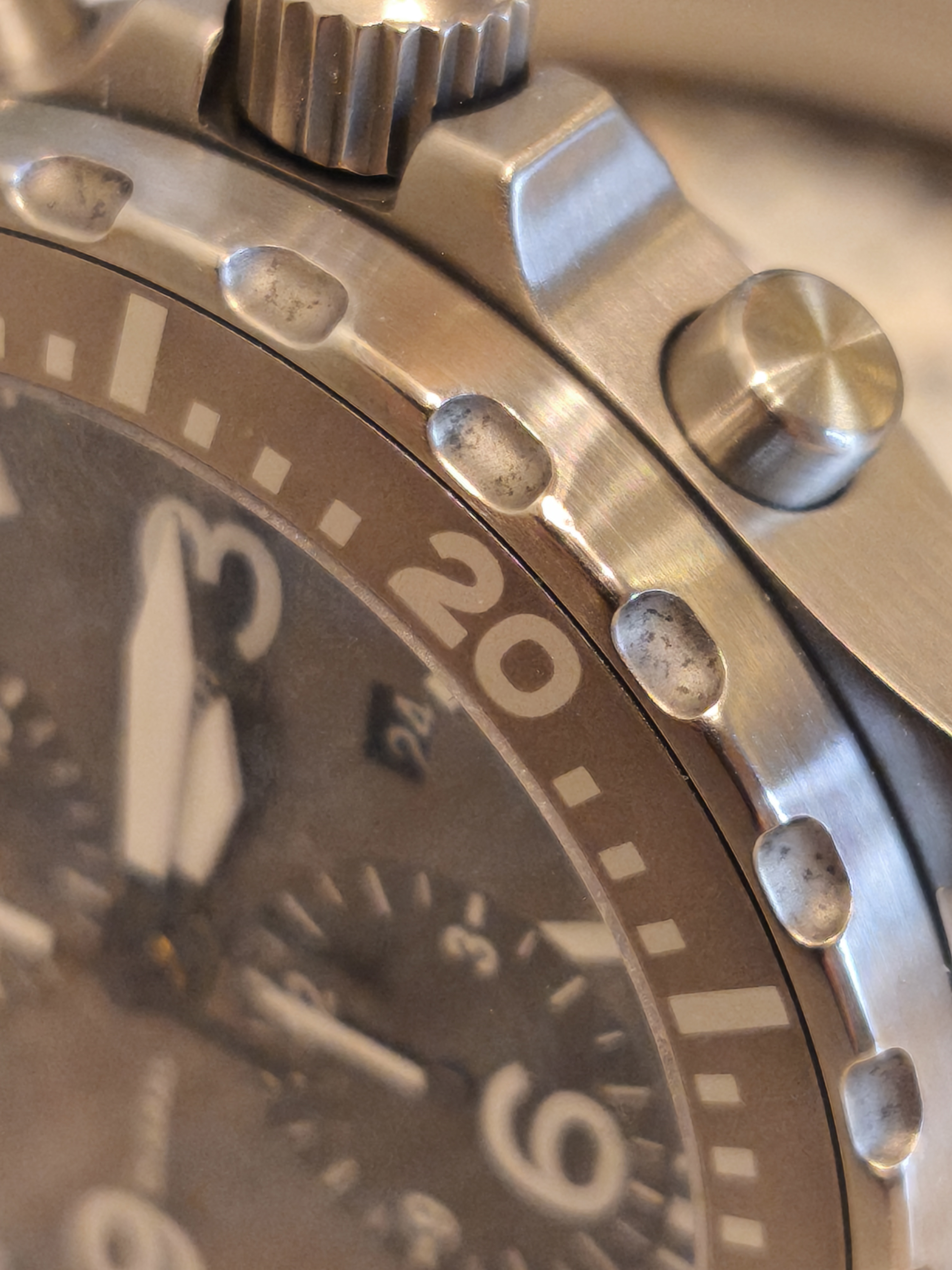 Man sieht an den Tipps das sich etwas löst, aber kein zufriedenstellendes Ergebnis...Zuvor fragte ich den Kundendienst was eine neue Lünette für die Diapal kostet und ob sie eine Idee hätten was diese dunklen Flecken sein könnten.