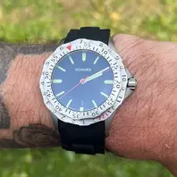 Sekunde lief nach ein paar Umdrehungen der Krone an, Datum schaltet nur vorwärts derzeit bei voll gezogener Krone und GMT Zeiger hing ein paar mal beim Stellen.