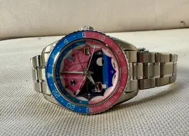 Das Emaille-Zifferblatt ist mit Kunst von Kolahon bedruckt.