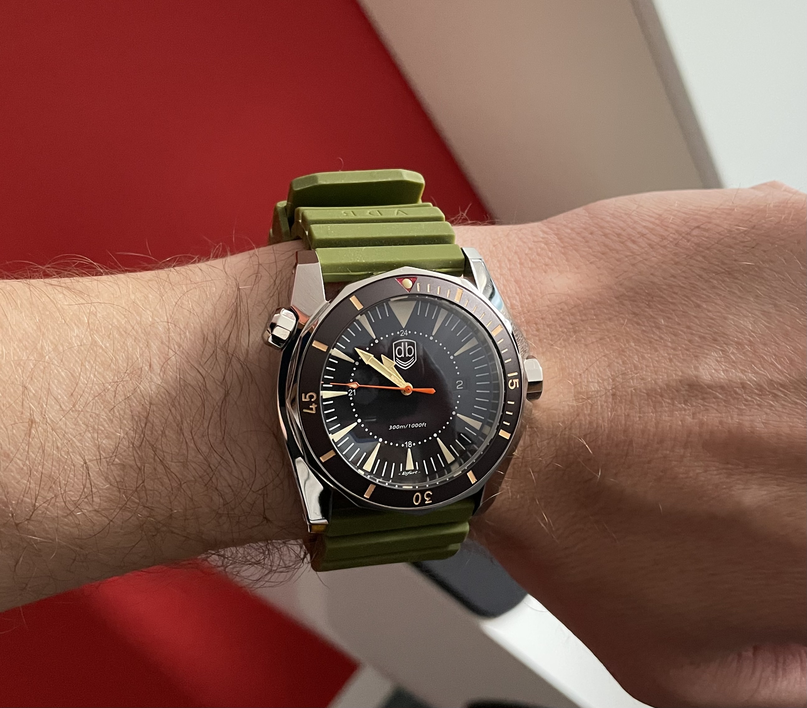 Klasse Bodo, schick und schlicht und zeitlos, die 1950-4 mit dem schön grünen Blatt und Handaufzug liegt mir auch noch schwer in der Nase seit unserem Besuch in Pforzheim...