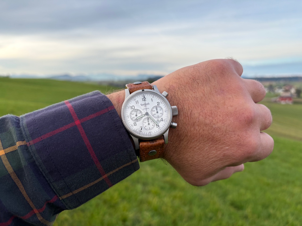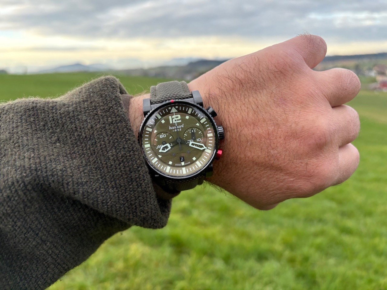 Guck mal daher, geht doch, sieht super aus und nachdem ich es mag, das Uhrengewicht zu spüren, war das Volumen der Uhr auch kein Problem mehr.