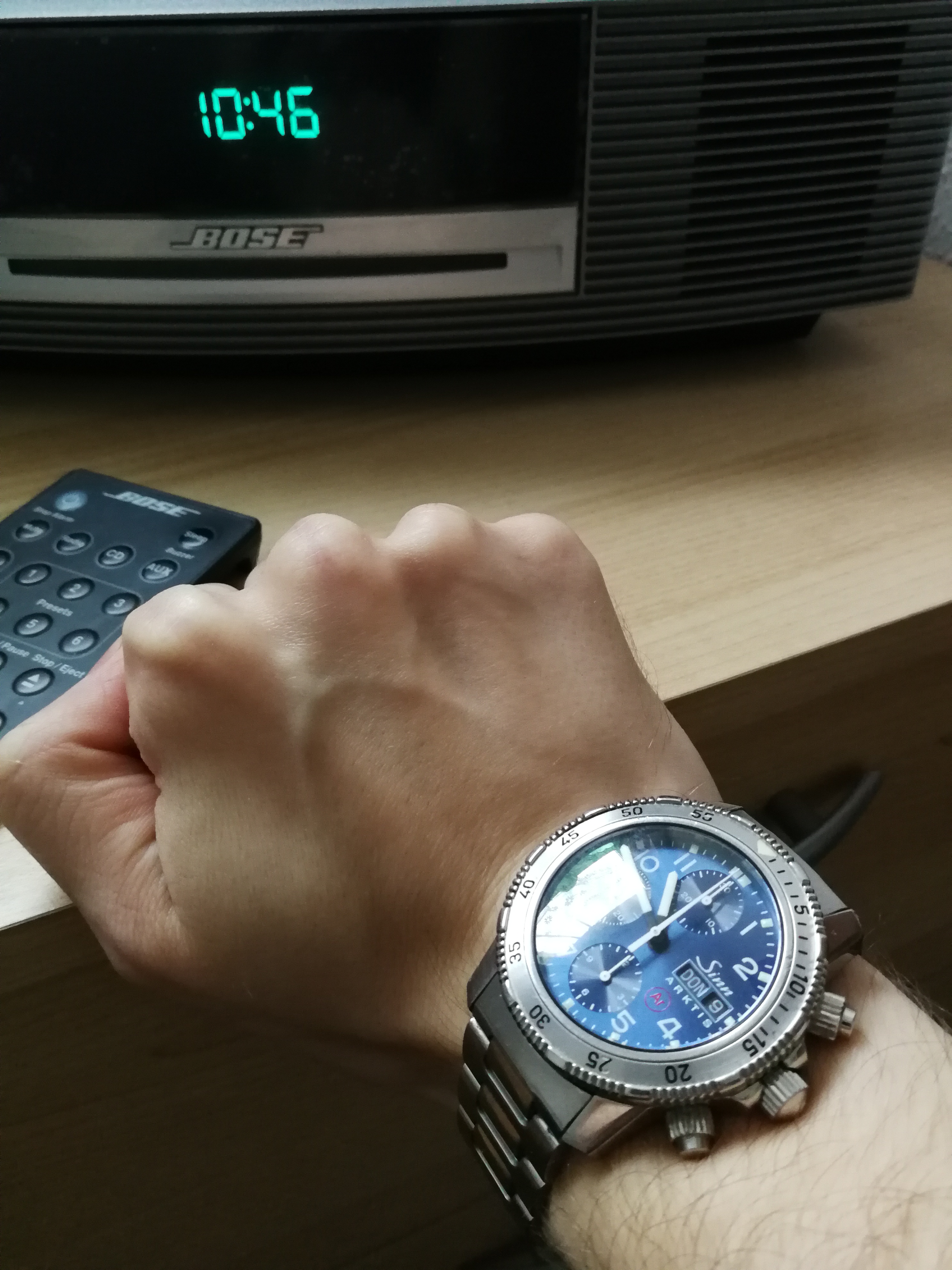 Bei mir nix Neues am Arm. Festgetackert klebt sie am Handgelenk.
