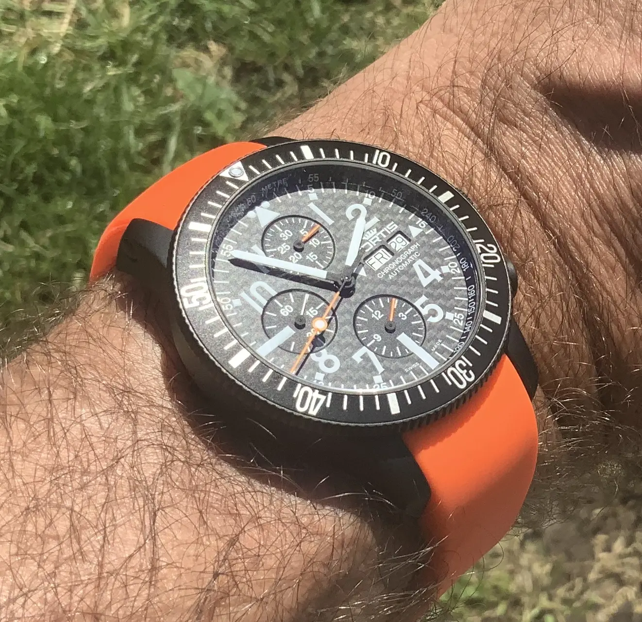 Aber im Vergleich zu einer 45.5mm PO oder Breitling ist sie durch ihr Kautschukband und ihrer Gehäuse Geometrie angenehm zu tragen.