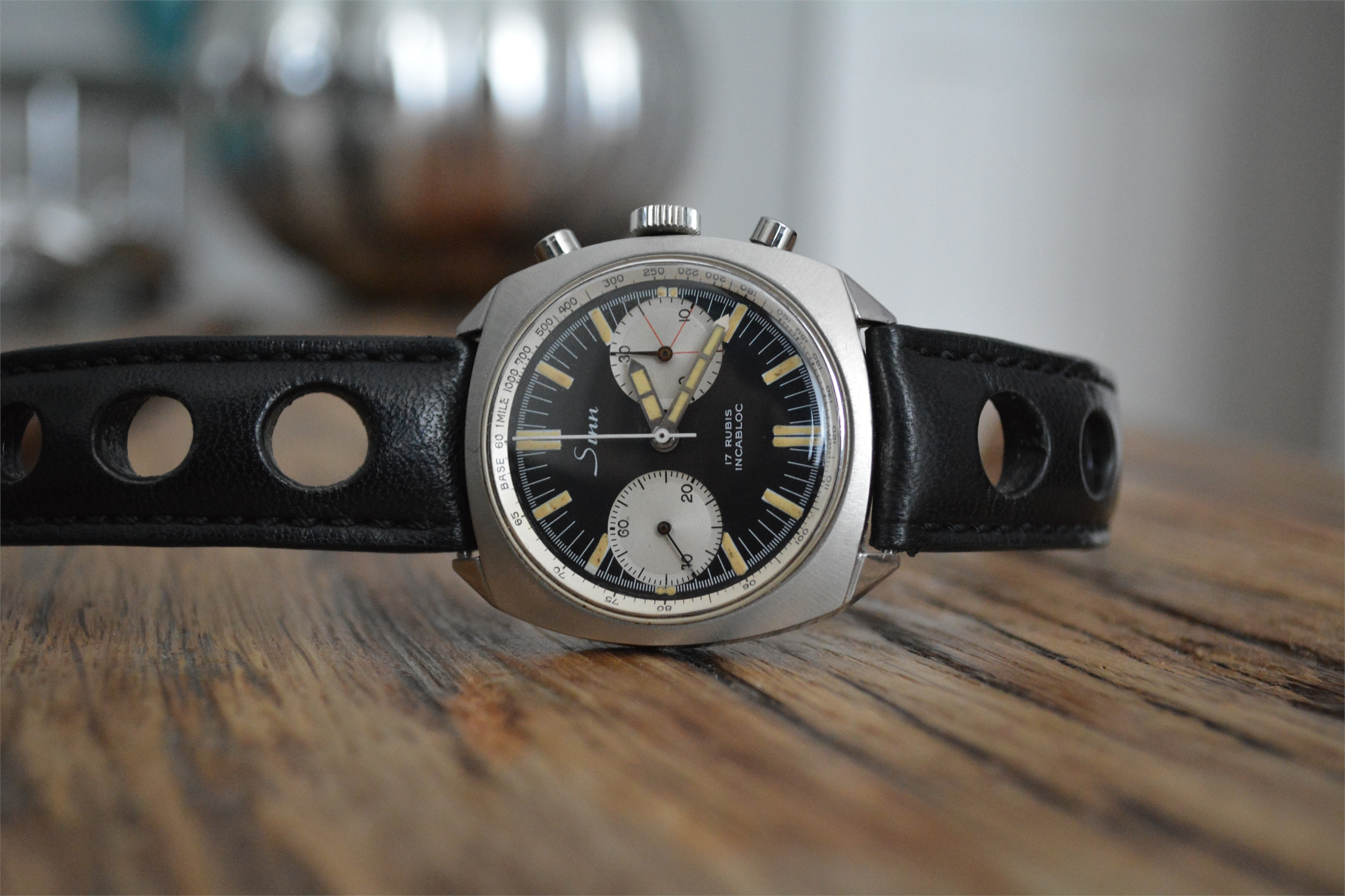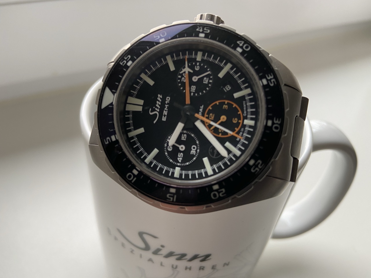 Bicompax-Werk SZ05 auf Basis 7750 mit 60er Teilung (üblich 30er), satiniertes Gehäuse, hochgewölbtes Saphir-Deckglas