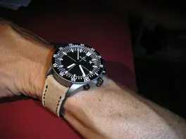 Bei meinen Versuchen war es zu eng in dem versenkten Bandanstoß. Das Band müsste im Bereich des Federsteges recht dünn sein.ja, da hatte ich ein bisserl Spass mit. Das uncoole Originalband hab ich Grobmotoriker beim ersten Einstellen mit dem Schraubendreher an der Schliesse gepflegt verdellt. OK, fand ich eh unschön und hätte das austauschen wollen. Und da ich nicht noch mehr kaputt machen wollte - ab in Nachbarort zum Uhrmacher. Der hatte ein 18mm Lederarmband für 19,- da und mir auch gleich drangemacht. Und ja, es ist eng am Steg und ich war froh, dass er mir das richtig gut erledigt hat. Mein verdelltes Originalband hat er auch wieder geradegebogen.