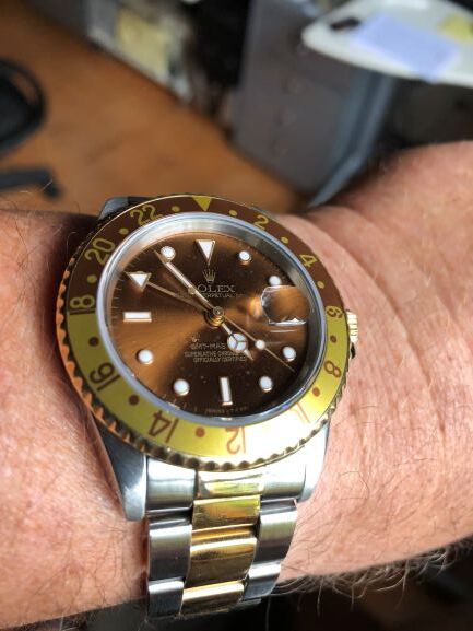Rolex GMT-Master II Stahl/Gold mit Stahl-/Goldband, gold colored bezel and Tiger eye dial,