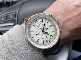 Das helle Zifferblatt, die schwarzen Zeiger, die Flybackfunktion...schön mit verschiedenen Lederbändern zu kombinieren...so etwas fehlte bei mir einfach noch
