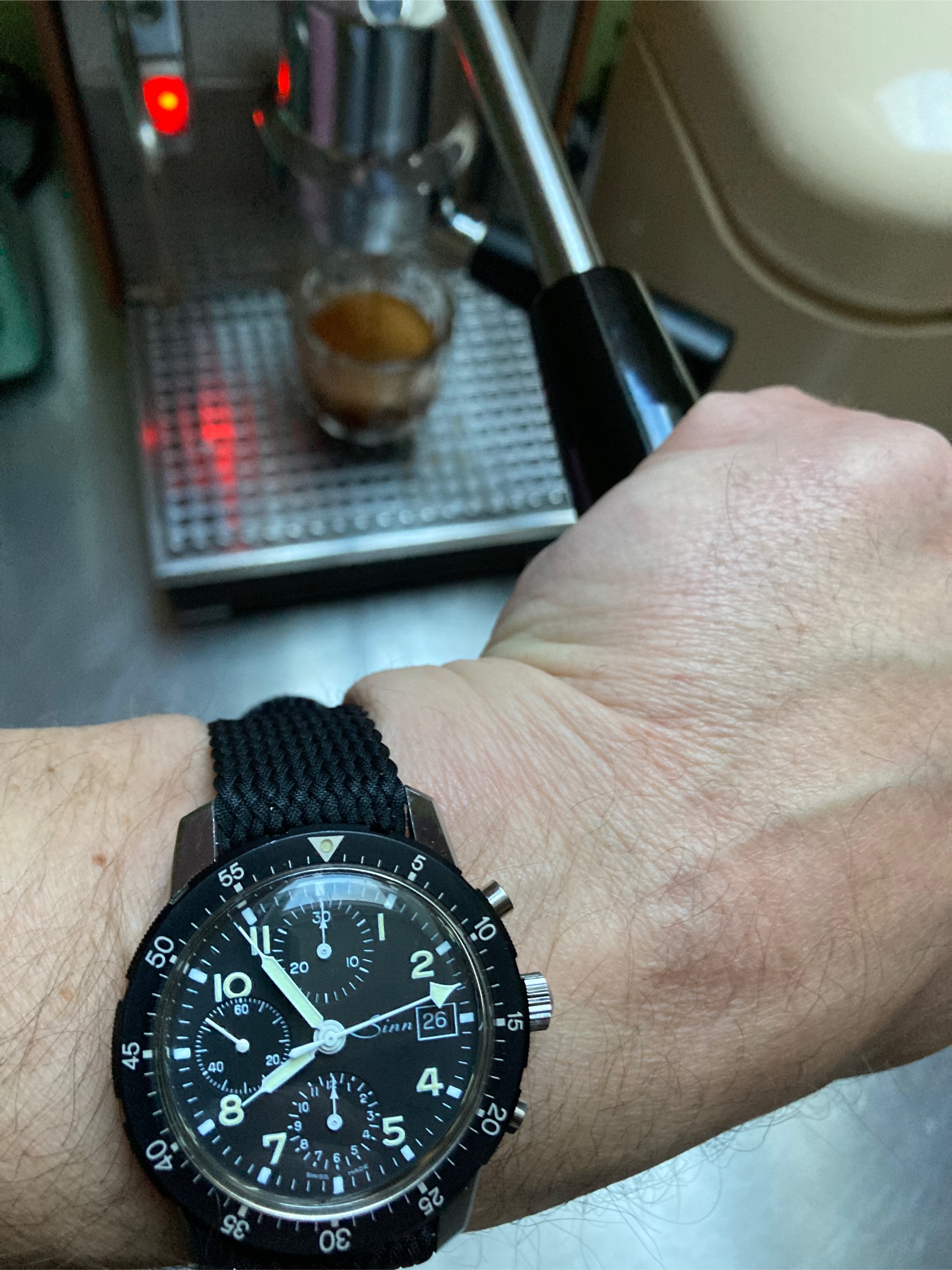 Kroko stehe ich irgendwie von der Optik nicht so drauf, aktuell ist das original Sinn Rindslederband mit mit weisser Naht montiert, dass trage ich denke ich erstmal so. ![]()