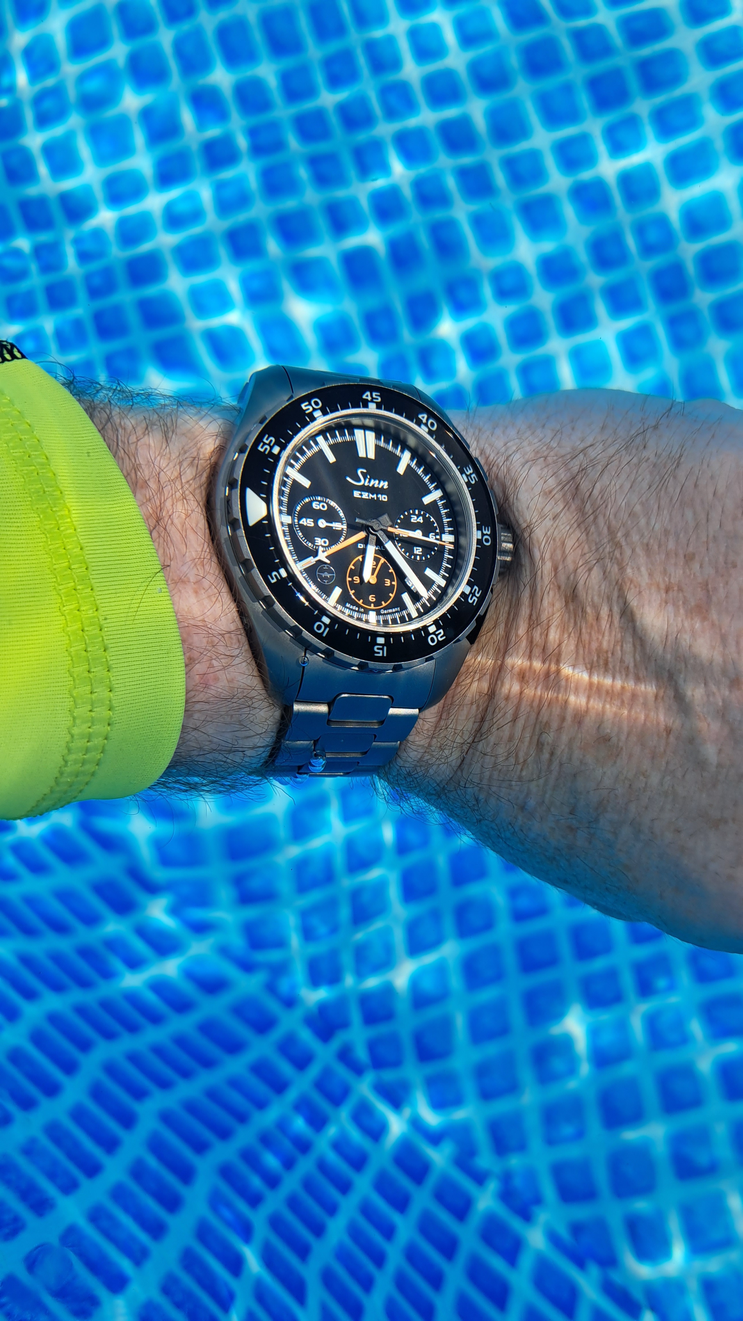 Gestern wurde die Poolsaison mit dem EZM10 gestartet. Der hat den großen Vorteil, dass er als Fliegerchronograph noch über eine D3 Dichtung besitzt. Dadurch darf man auch unter Wasser die Drücker betätigen. Kann sonst nur die 900er als Fliegerchronograph. Oder kennt ihr noch weitere?