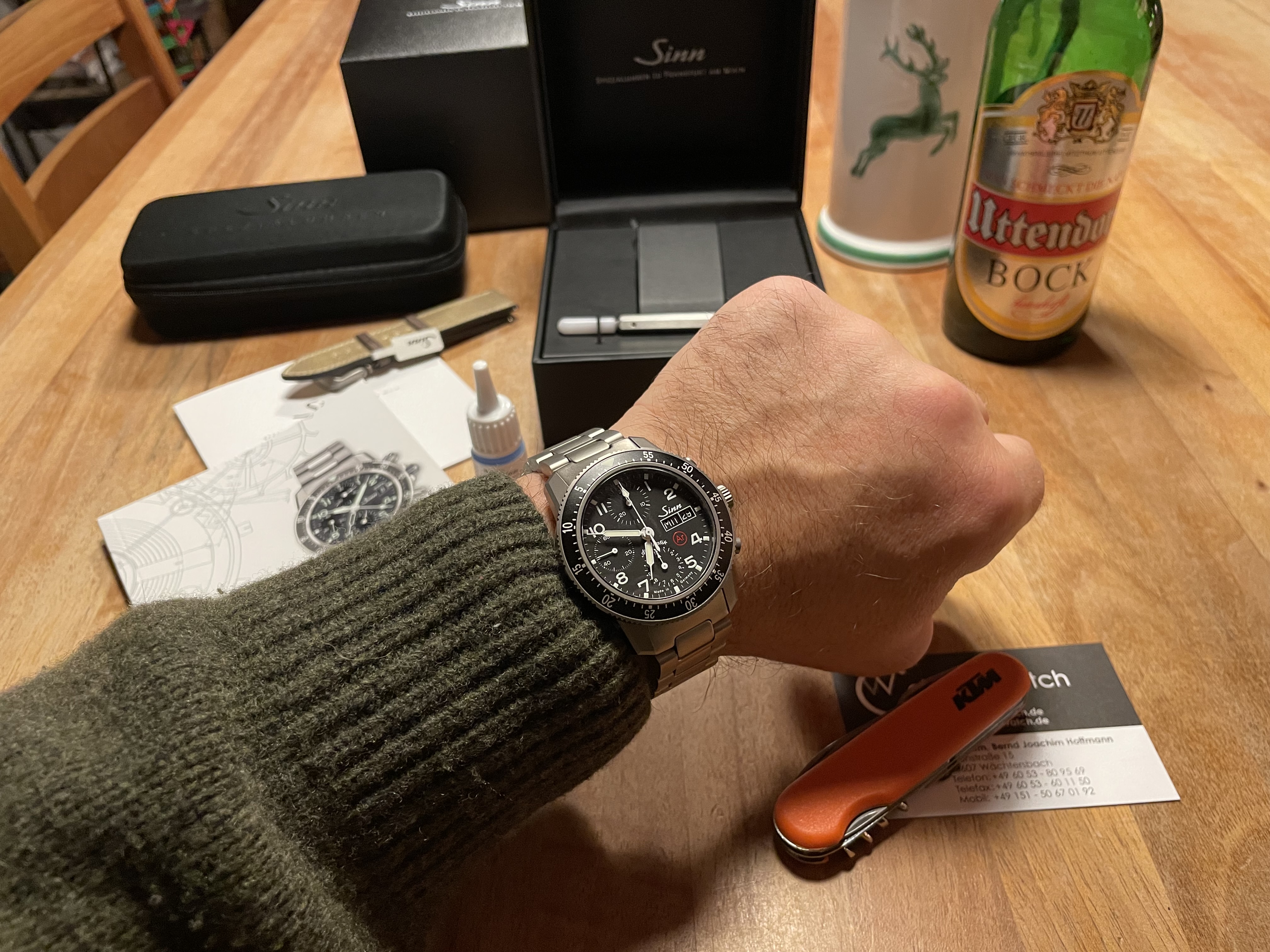 Nach 4 Monaten Wartezeit wurde es heut Abend endlich wahr und meine neue Jagdbegleiterin wurde ausgeliefert. Schon genial wie leicht die sich im Vergleich zu meiner 103 St anfühlt am Handgelenk. Das wird Freude bereiten, besonders am Berg!