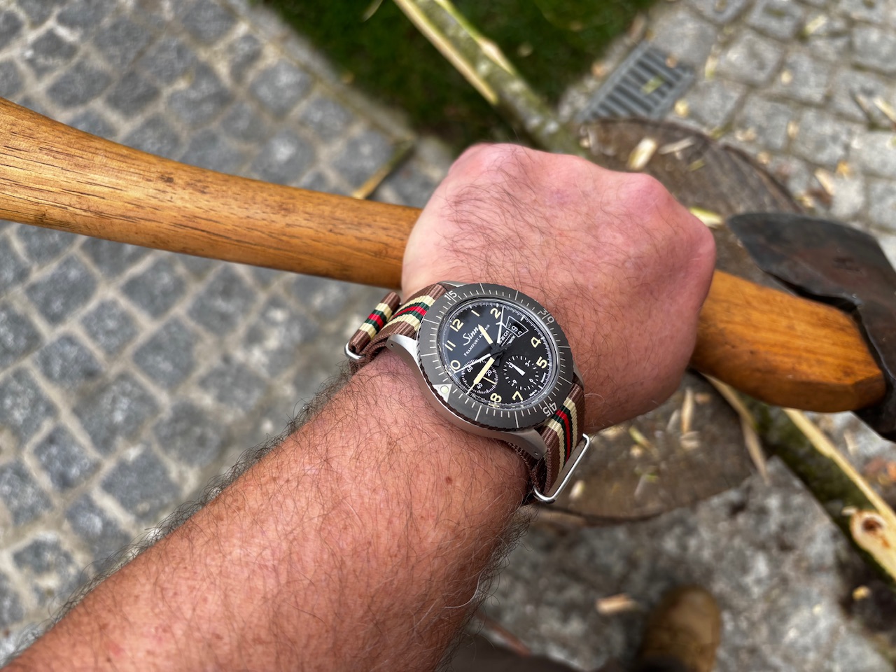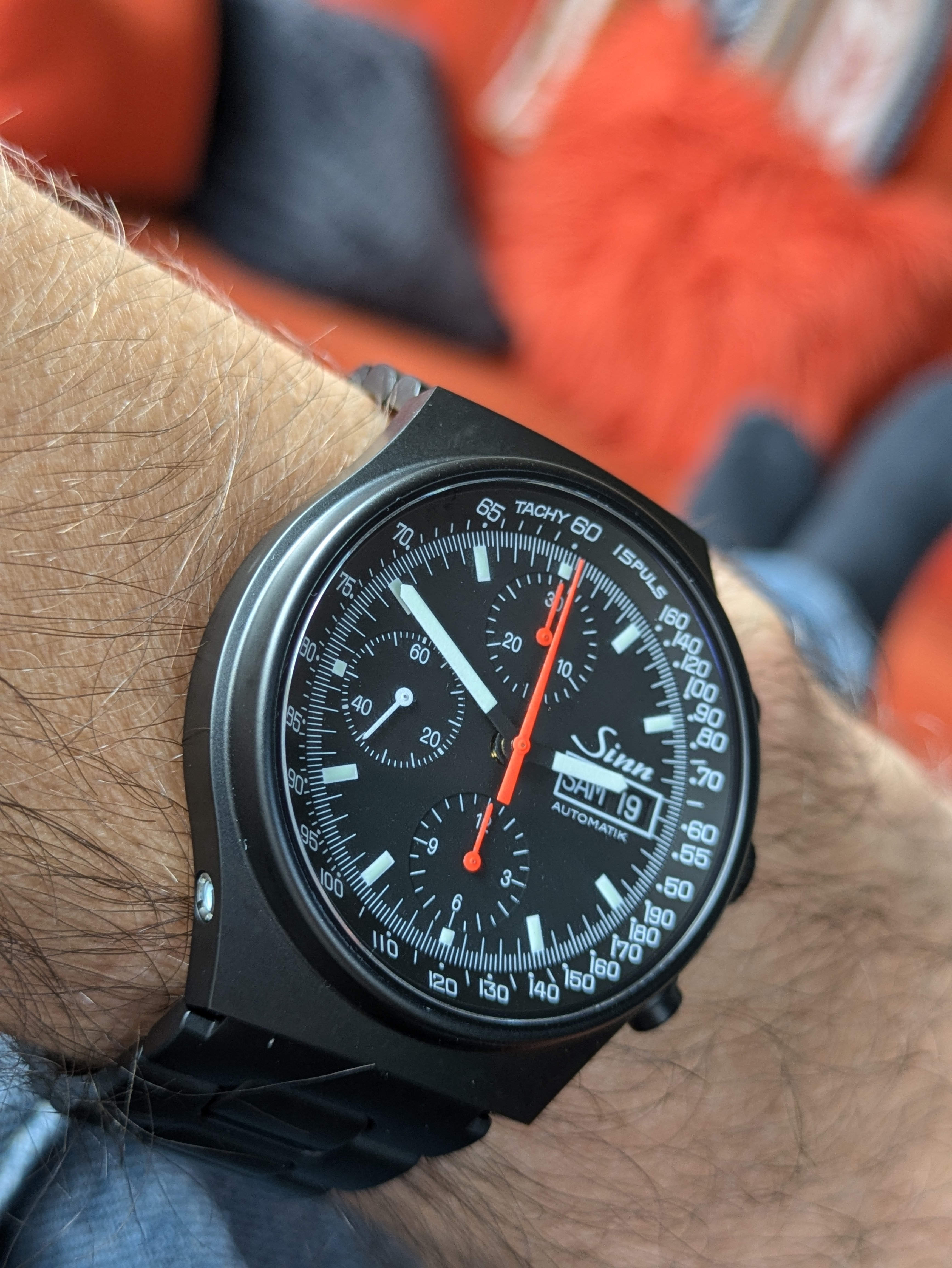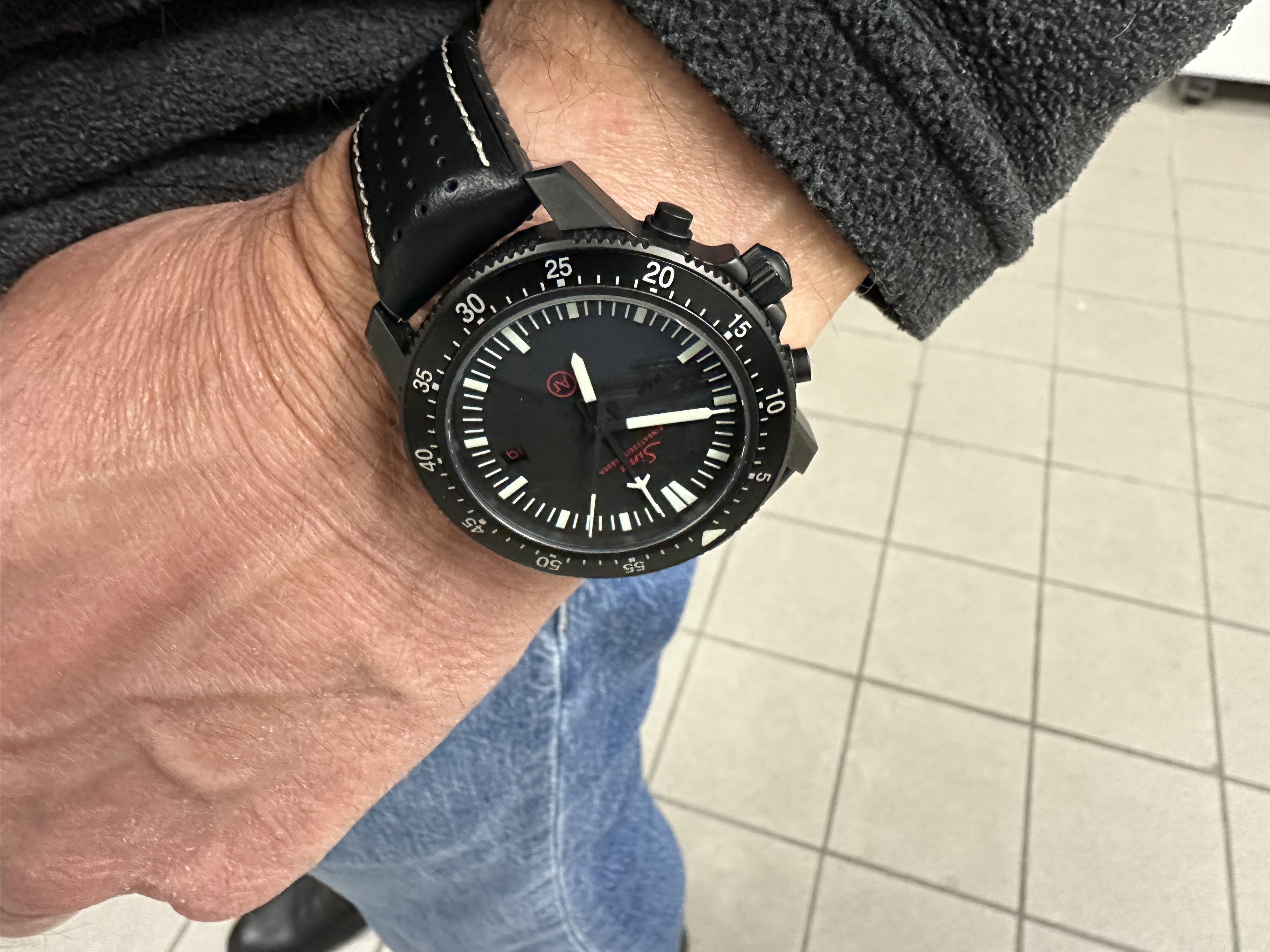 War heute unterwegs auf einer Modellbau Messe, und hatte die Sinn 104 St Sa A dabei am Arm, habe leider kein direktes Foto mit ihr auf der Messe, ihr müsst es mir einfach glauben