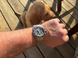 Eine sehr starke Uhr mit einem tollen Lederarmband.